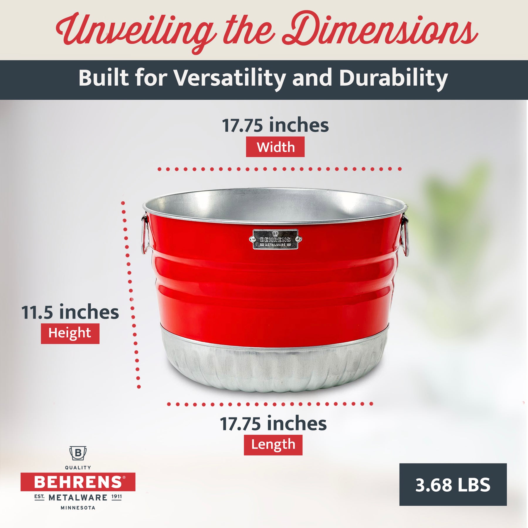 • Dimensions (L x W x H): 17.75 x17.75 x11.5 inches