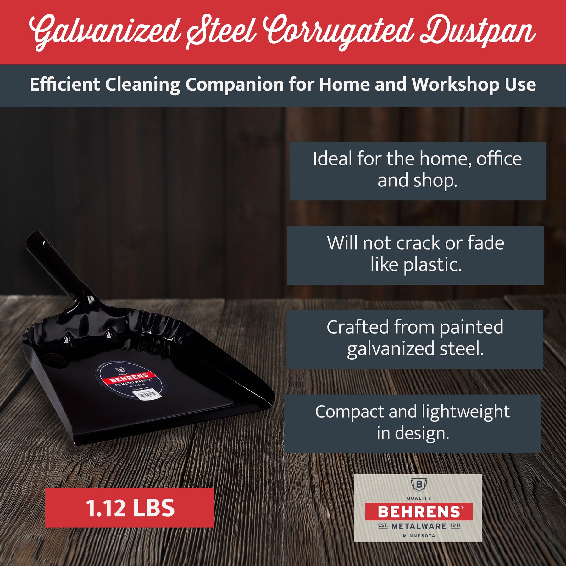 Behrens Portable Home Rectangular Galvanized Steel Corrugated Dustpan, Black
