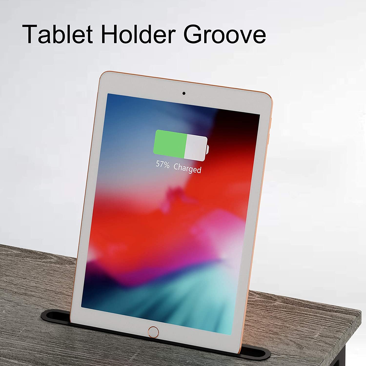 • Side-mounted headphone hook saves surface space and keeps your headphones within reach