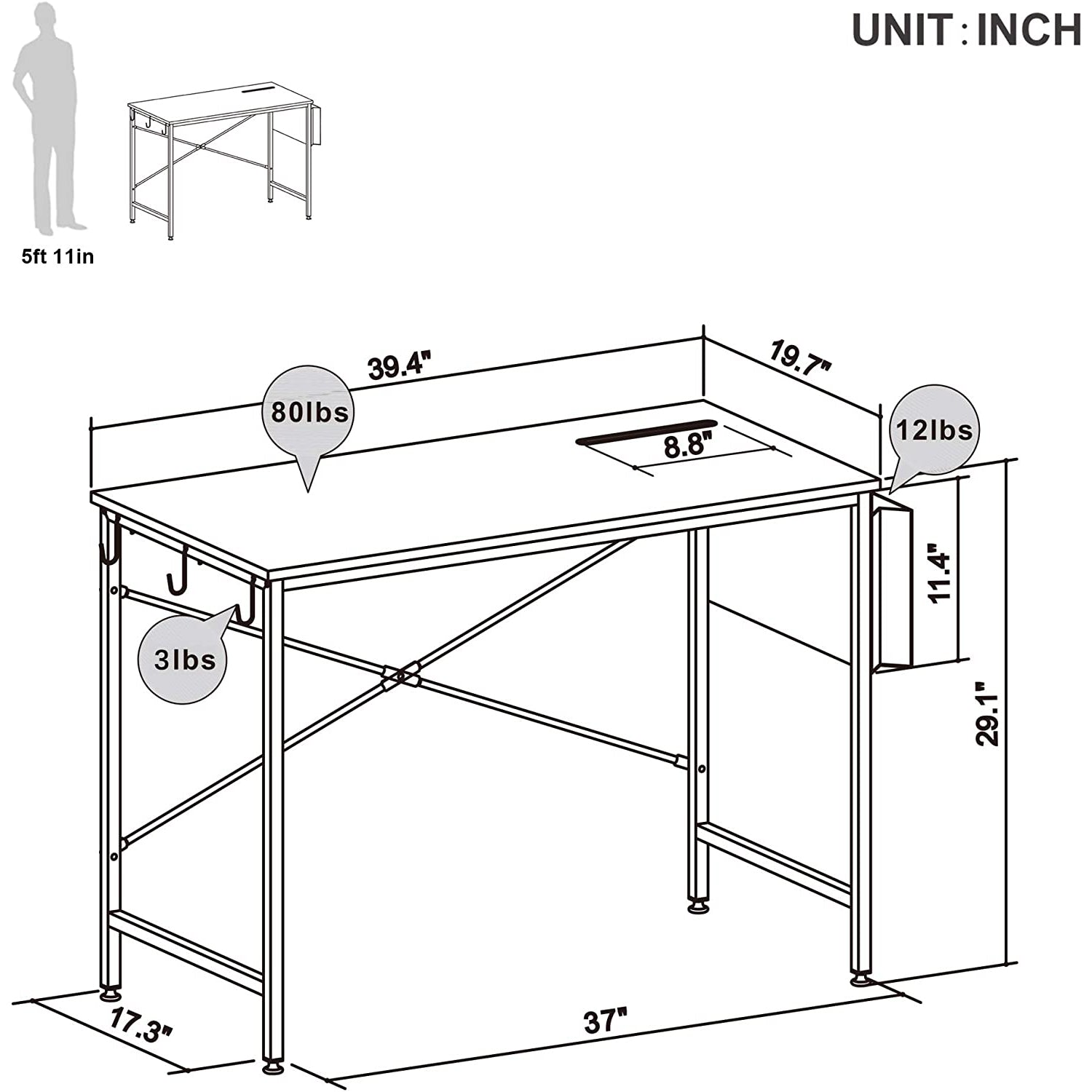 Bestier Computer Office Workstation with Storage Bag & Hook, Gray, 39" (Used)
