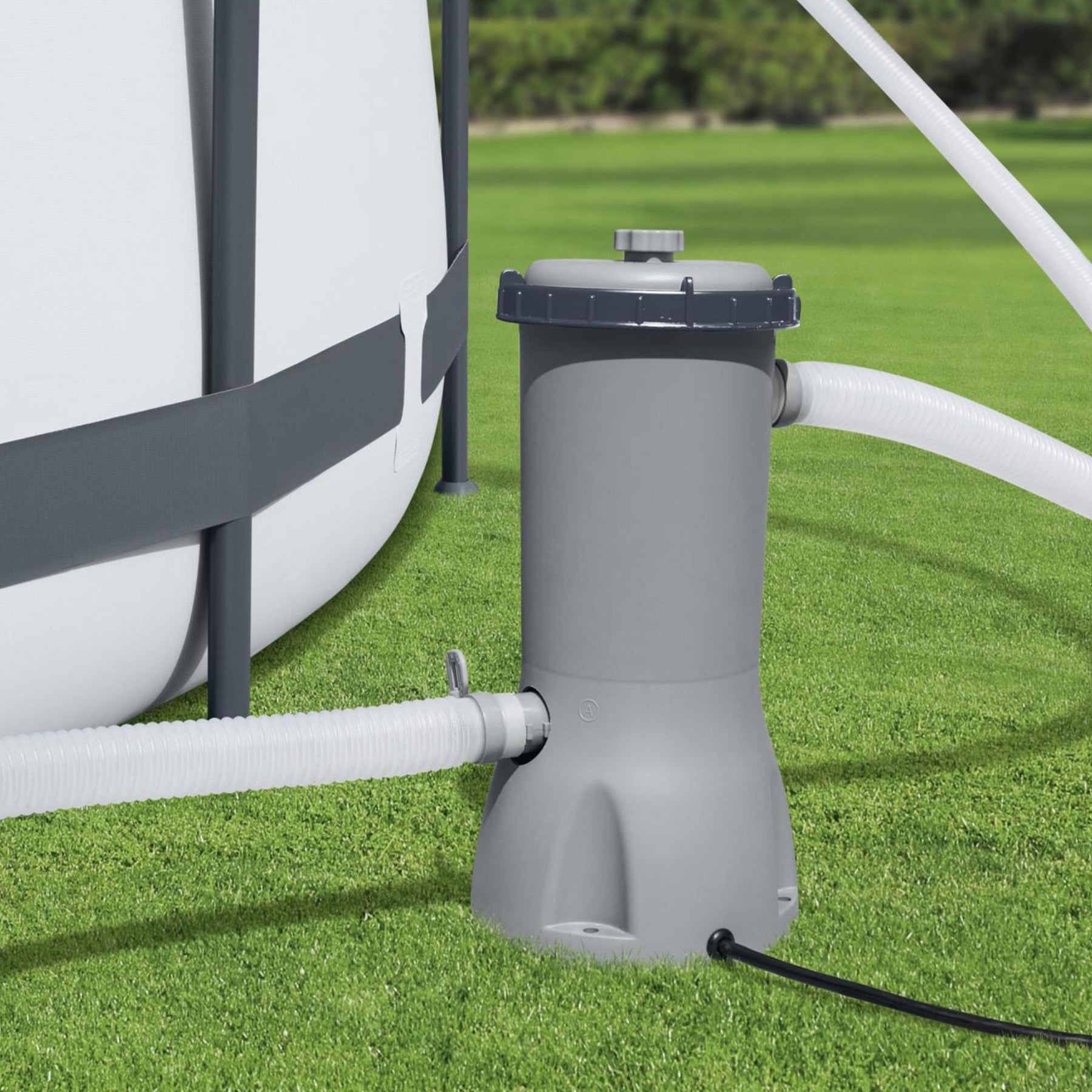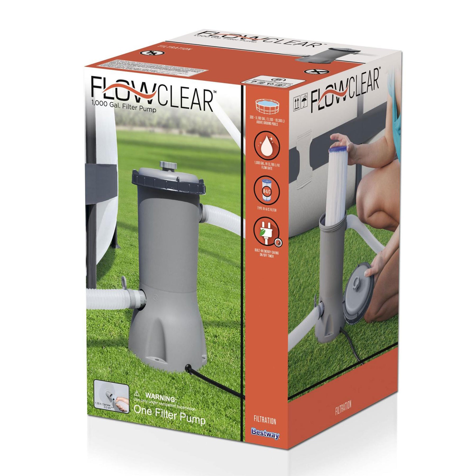 • Bestway 1000 GPH Flowclear Filter Pump keeps your pool water clean and crystal clear by filtering it and removing impurities and keeping bacteria from growing