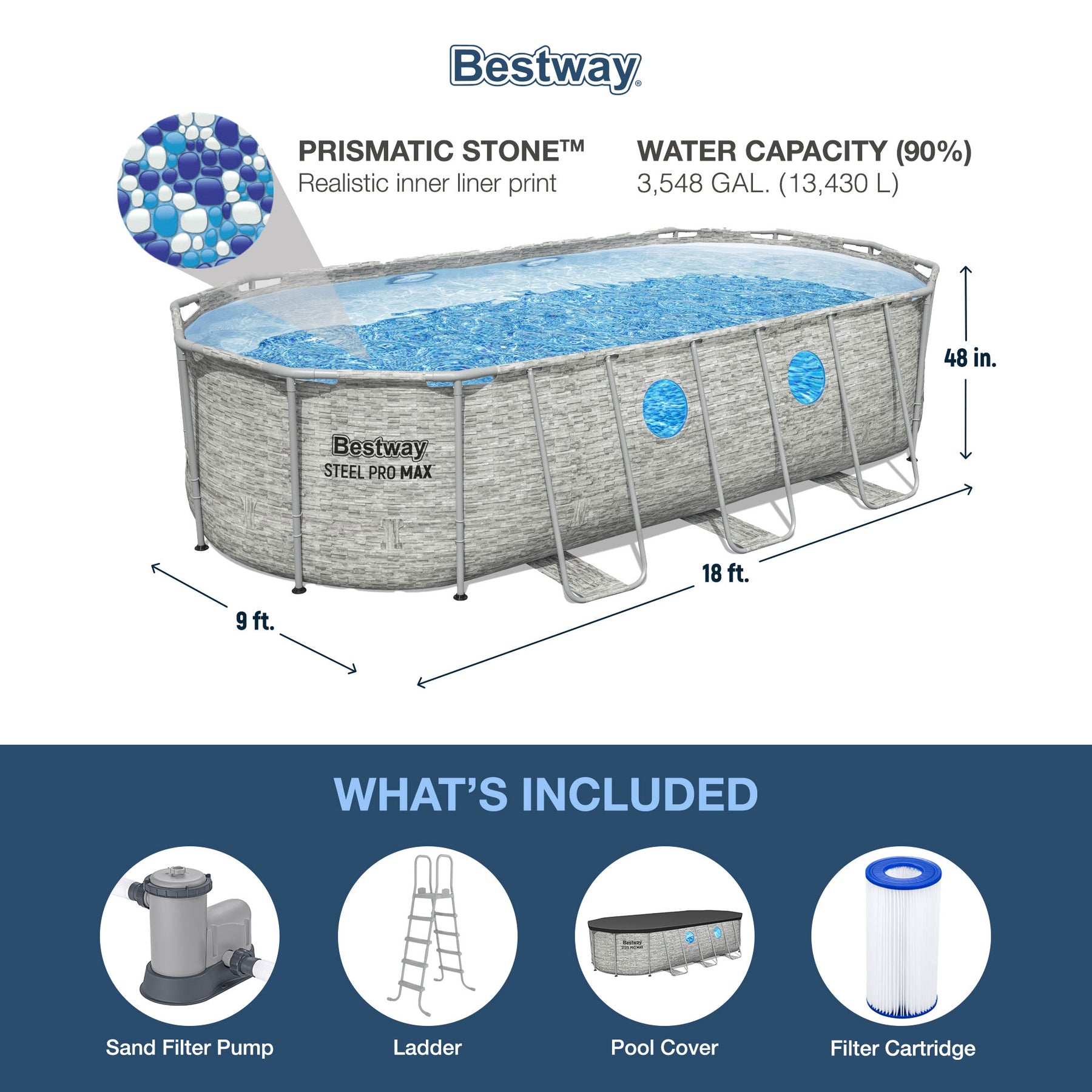 Bestway Power Steel Swim Vista 18' x 9' x 48" Above Ground Swimming Pool (Used)