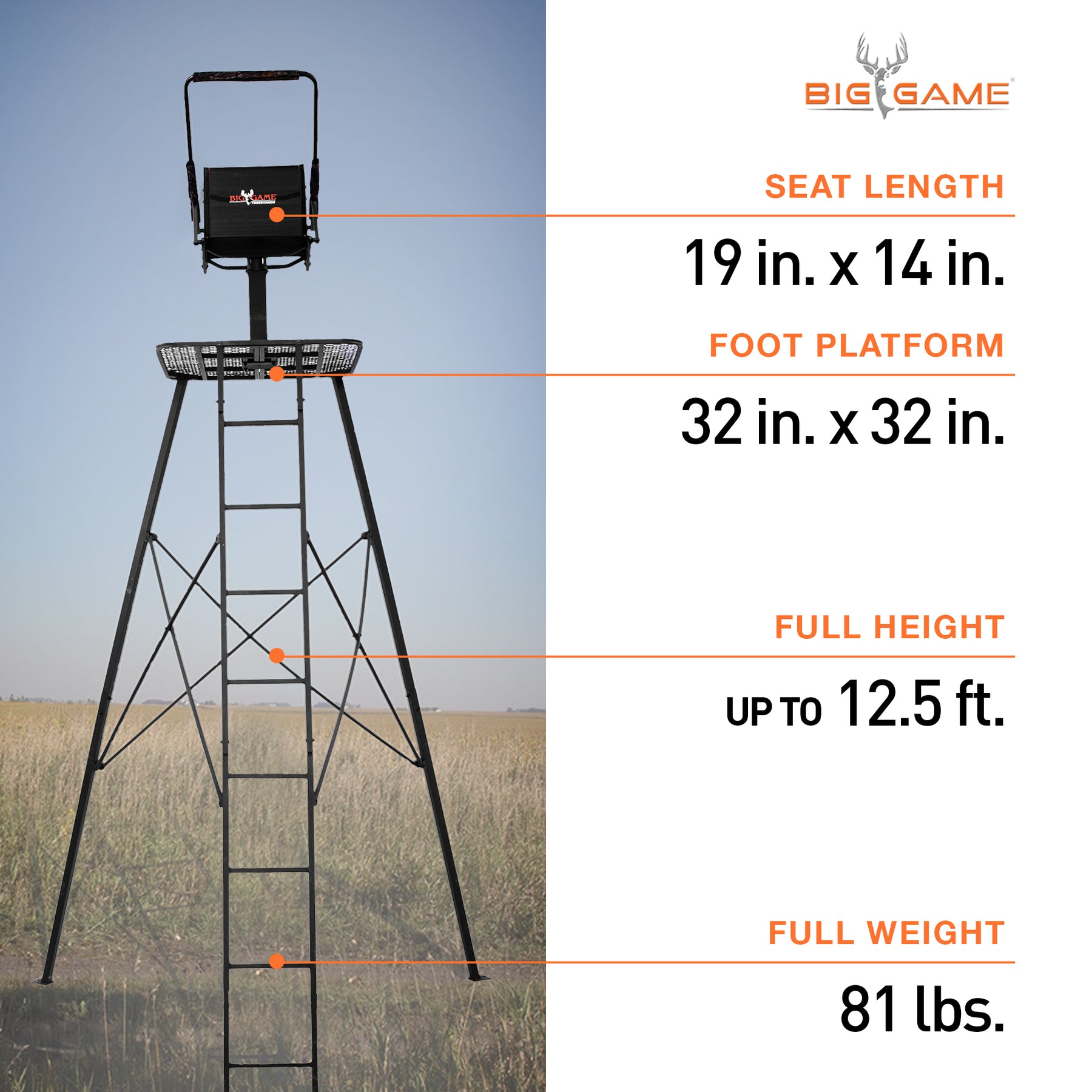 Big Game 12.5 Ft Tripod Stand, Deer Hunting Ladder w/ Rotating Seat (Open Box)