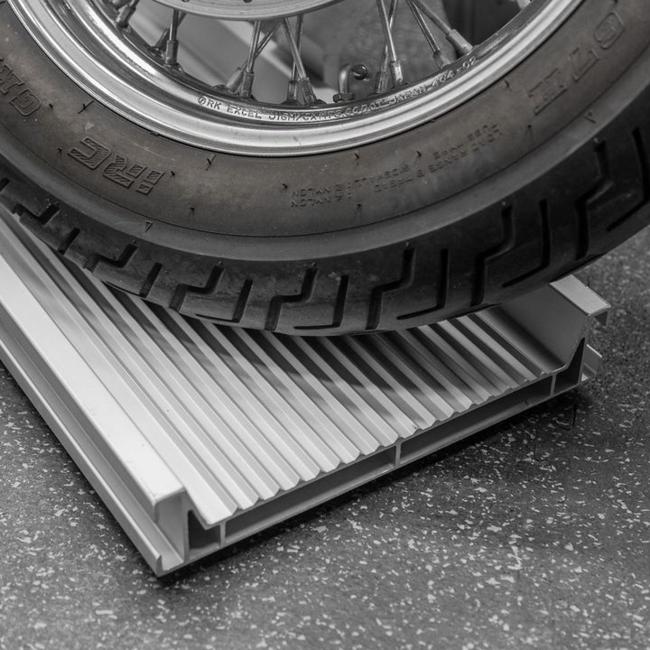 The innovative ride-on, ride-off design allows for effortless loading and unloading of your motorcycle without the need for ramps or levers. Simply roll your bike onto the dolly, lock the casters, and you’re ready to go! The track’s extruded surface provides excellent traction, ensuring stability during the loading and unloading process.