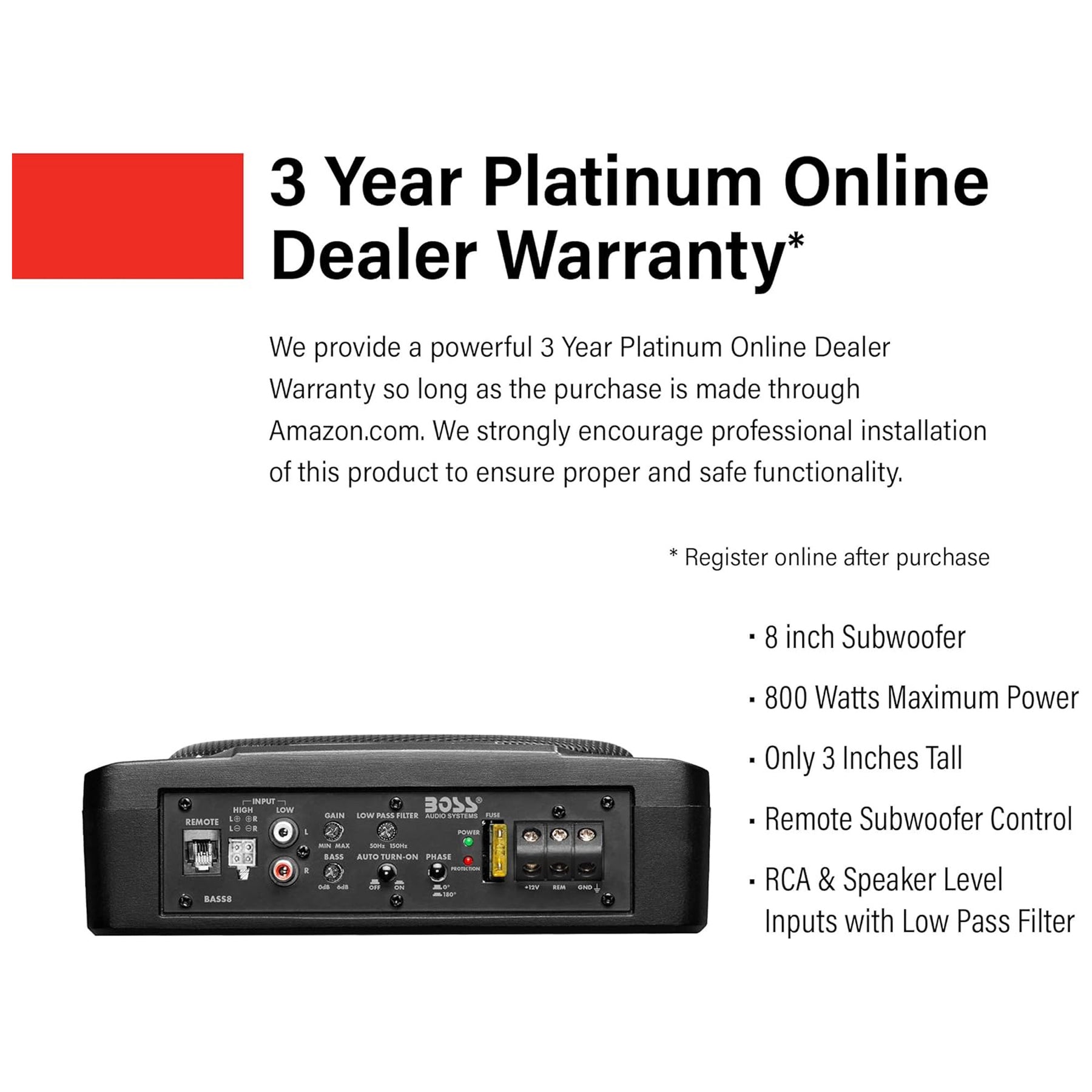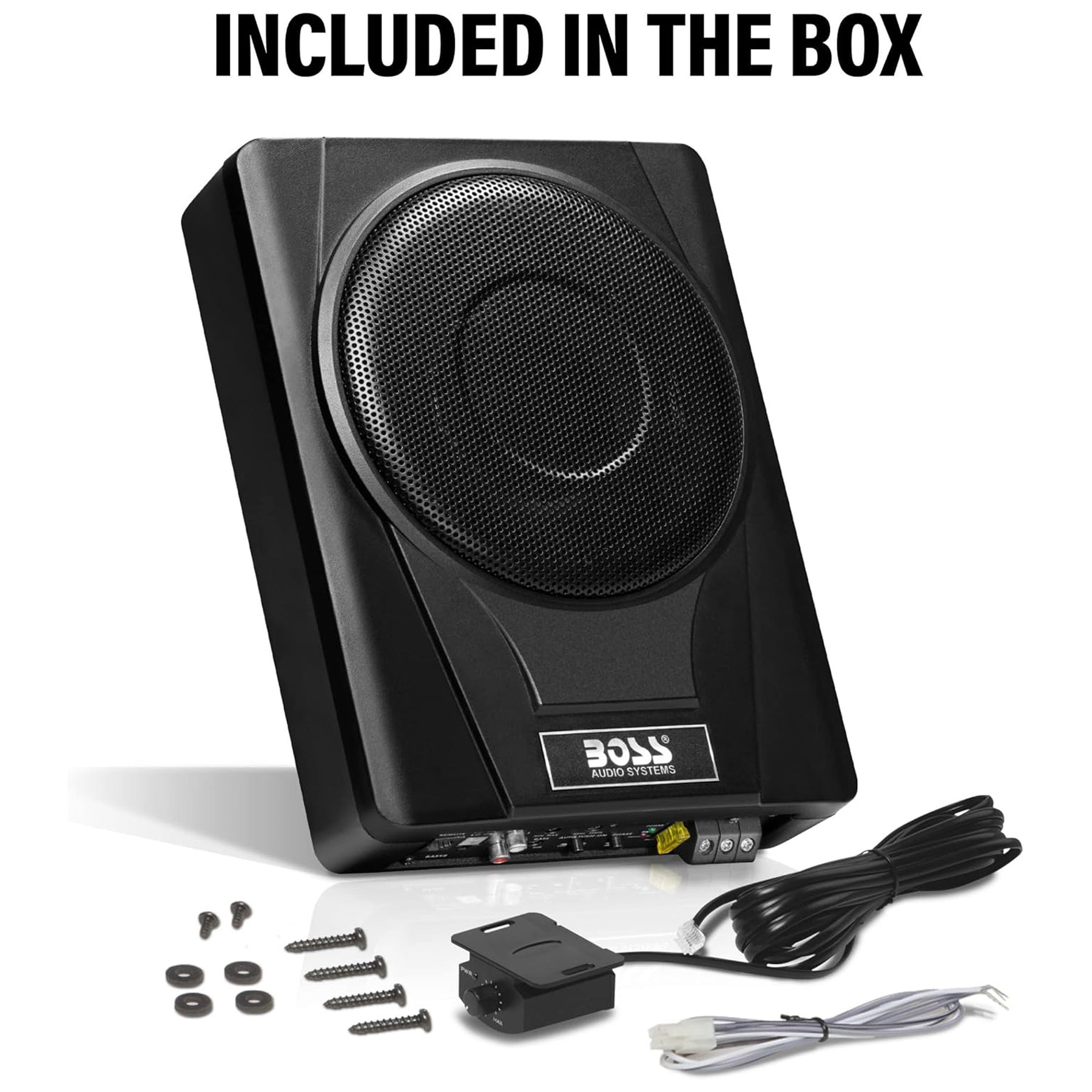 Transform your vehicle's audio experience with the BOSS Audio BASS8 8-Inch Under Seat Powered Car Subwoofer. Engineered for those who demand exceptional bass without losing valuable space, this compact, high-output subwoofer fits neatly under most car and truck seats. Its slim design doesn't just offer an aesthetic and space-saving advantage; it brings a powerful 800W of peak power for deep, resonant lows that make every ride more enjoyable.