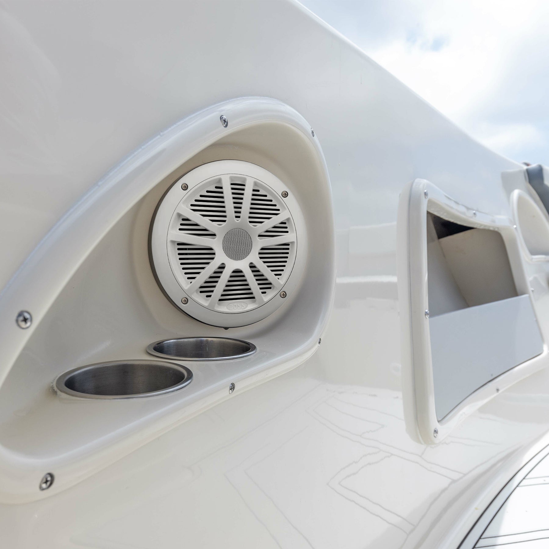 The Boss MR6W 6.5" marine speakers features a MAX power handling of 180 watts (360W per 4-pack) with a poly carbon cone and a cloth surround. These speakers have a mounting depth of 2.1875" and a frequency response of 80 Hz to 20 Hz. Enjoy your sound during the rain or shine with the Boss MR6W 6.5" marine speakers.