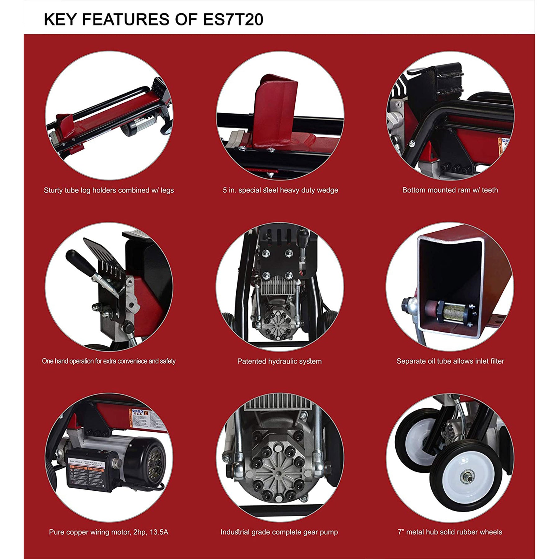 • Log splitter has a single-handed operation and allows you to split logs in your own backyard