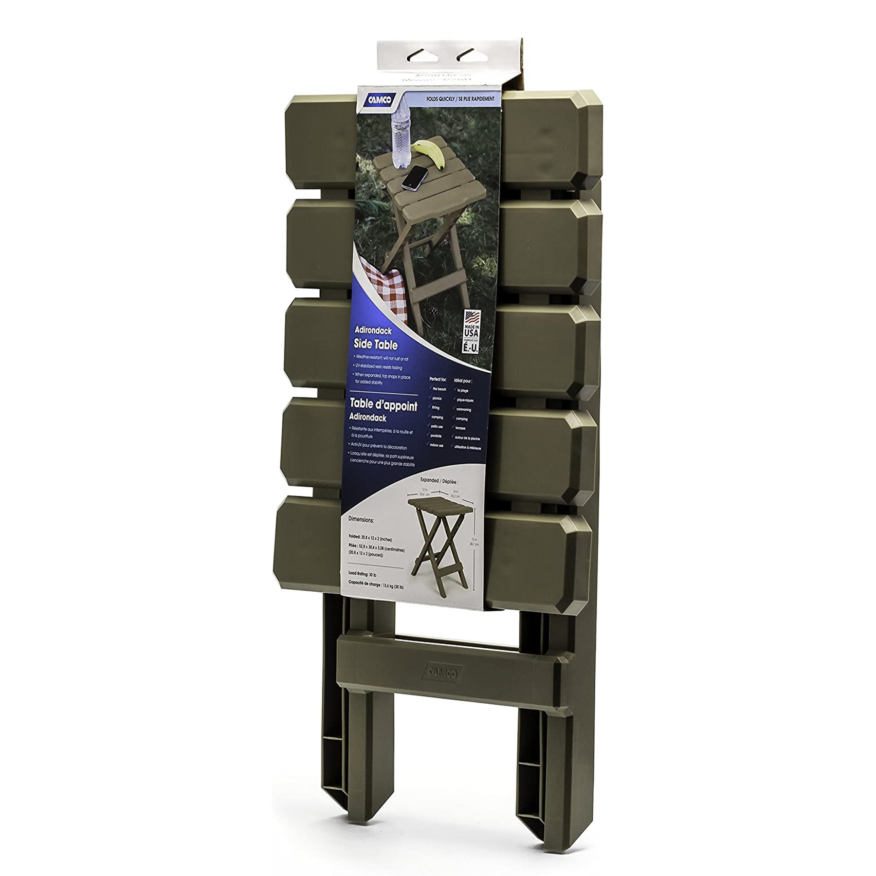 Make sure there's enough table space, whether you're in your backyard or on the road, with these Camco Adirondack Outdoor Folding Side Tables.