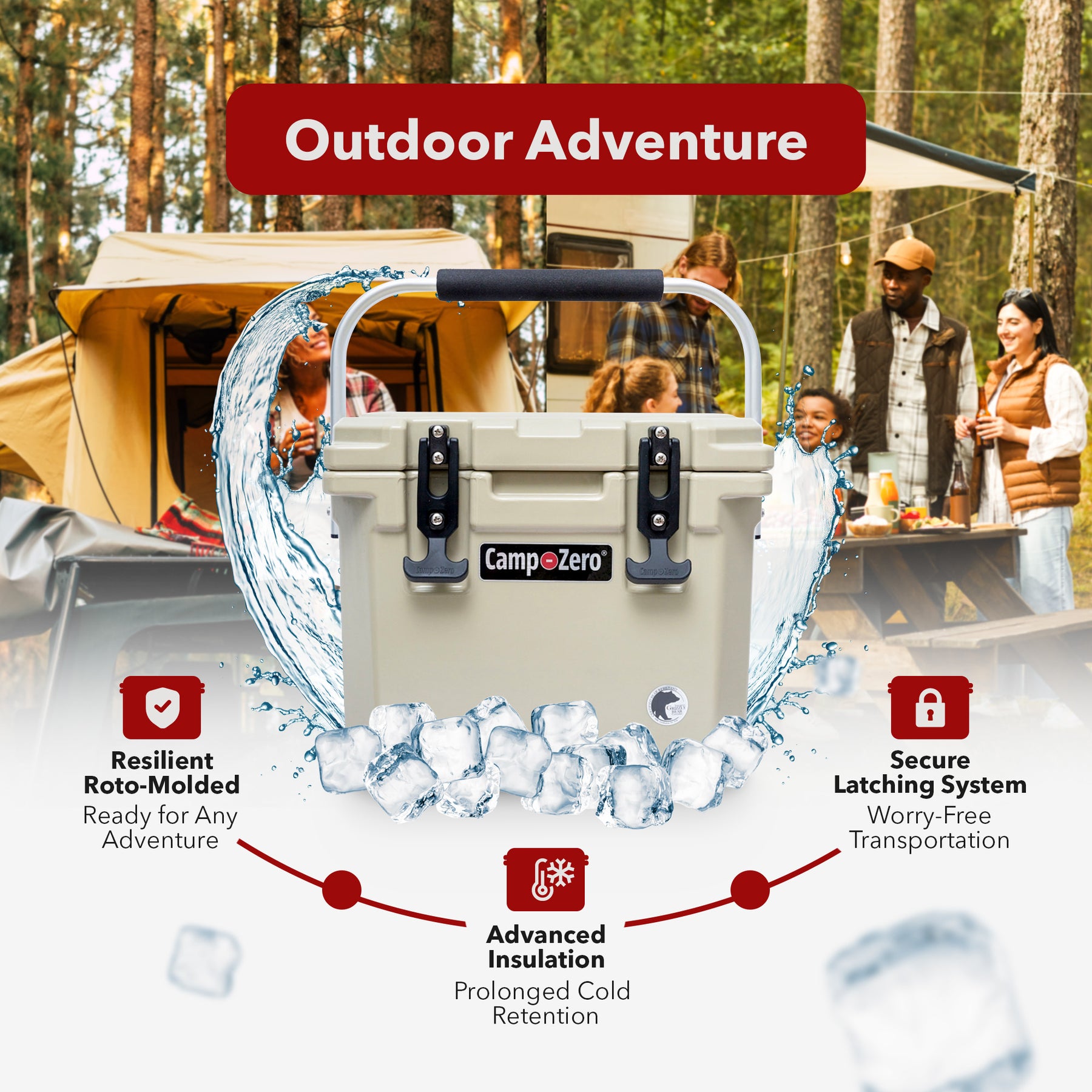 • Commercial-grade insulation and a freezer-grade sealing gasket maintain temperatures for extended periods, keeping contents colder for longer