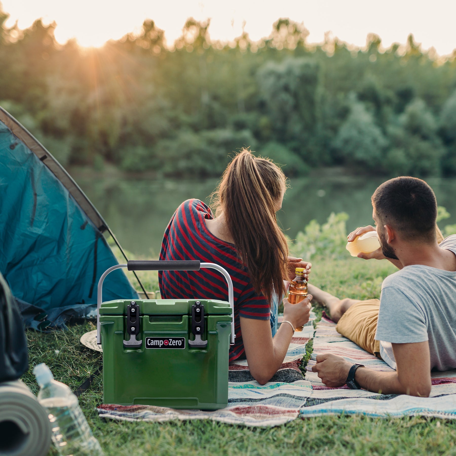 CAMP-ZERO 10 Liter 10.6 Quart Lidded Cooler with 2 Molded In Cup Holders, Green