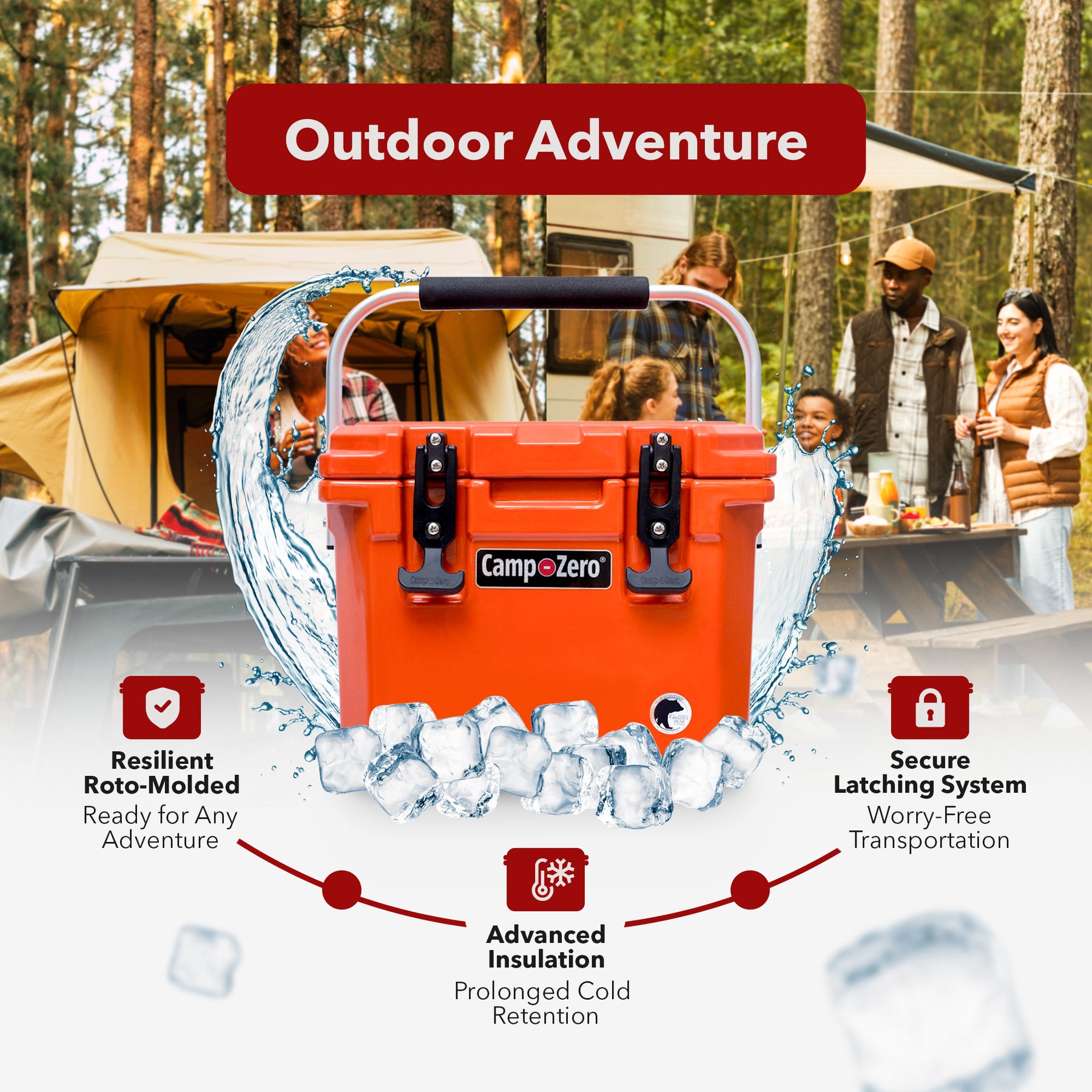 Discover the CAMP-ZERO 10-Liter 10.6-Quart Lidded Cooler with 2 Molded-In Cup Holders, a testament to durability and functionality.