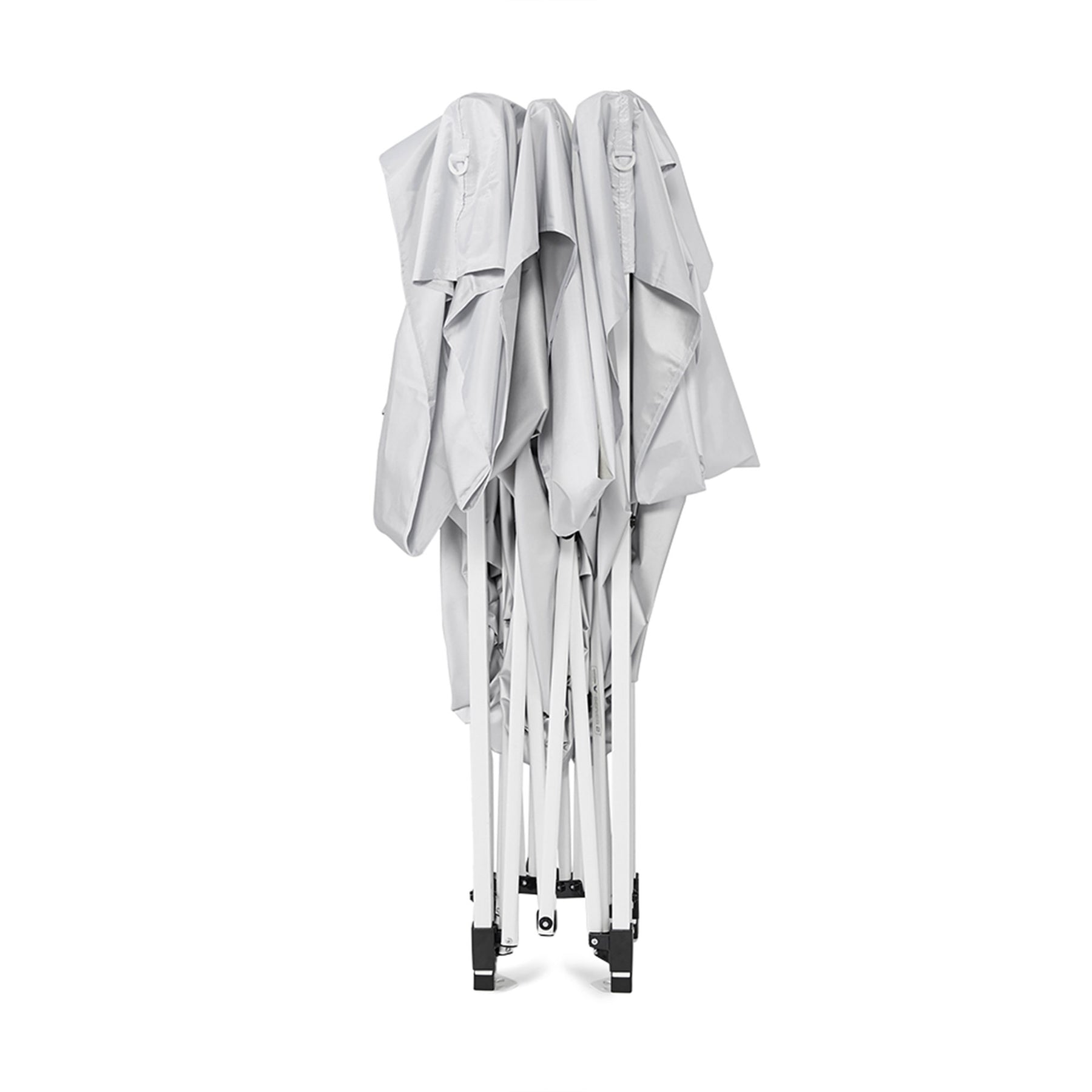 • Fully assembled slant leg pop up canopy with cathedral style, white powder coated steel frame for maximum head room