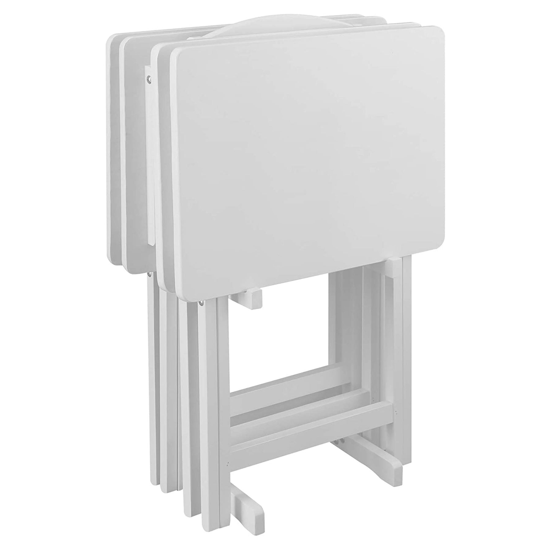 Casual Home Solid Wood Folding Tray Table with Storage Stand, 4 Pc (Open Box)