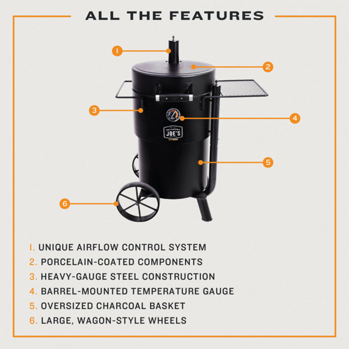 Whether a seasoned pro or a novice enthusiast, the Char-Broil Oklahoma Joe's Bronco Barrel Drum Smoker empowers you to upgrade your outdoor cooking experience. Impress friends and family with mouthwatering, completely smoked dishes that will keep them returning for more. Unlock the true potential of barbecue mastery with the Bronco.