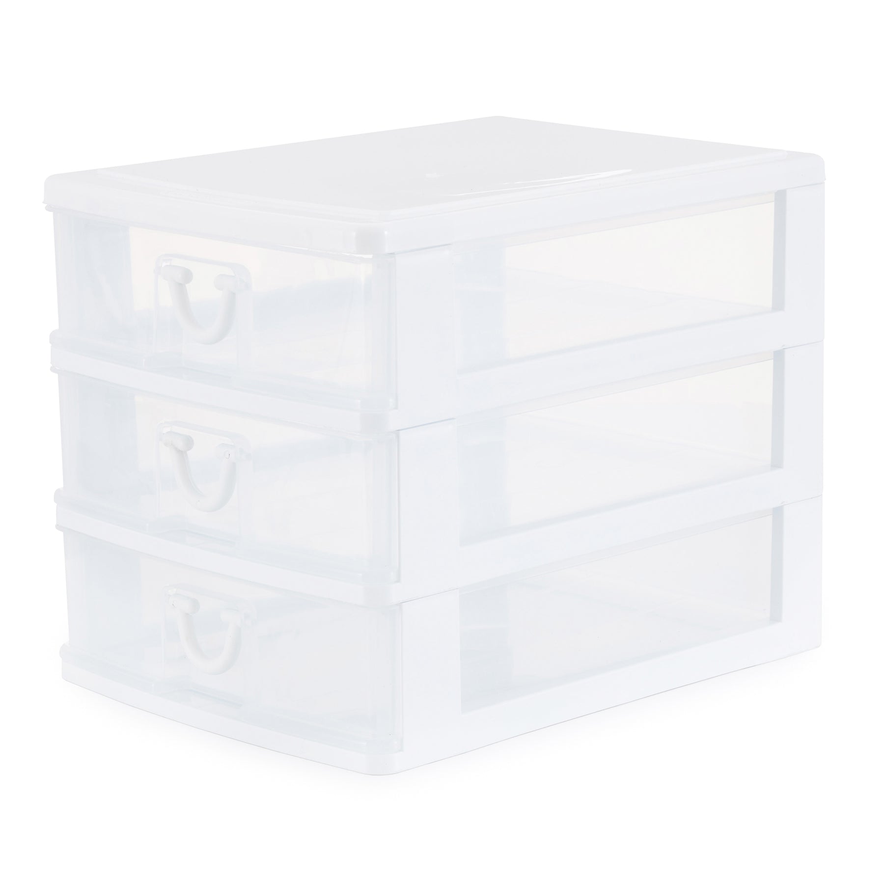 Clear Mini 3 Drawer Desk and Office Organizer with White Finish (Used)