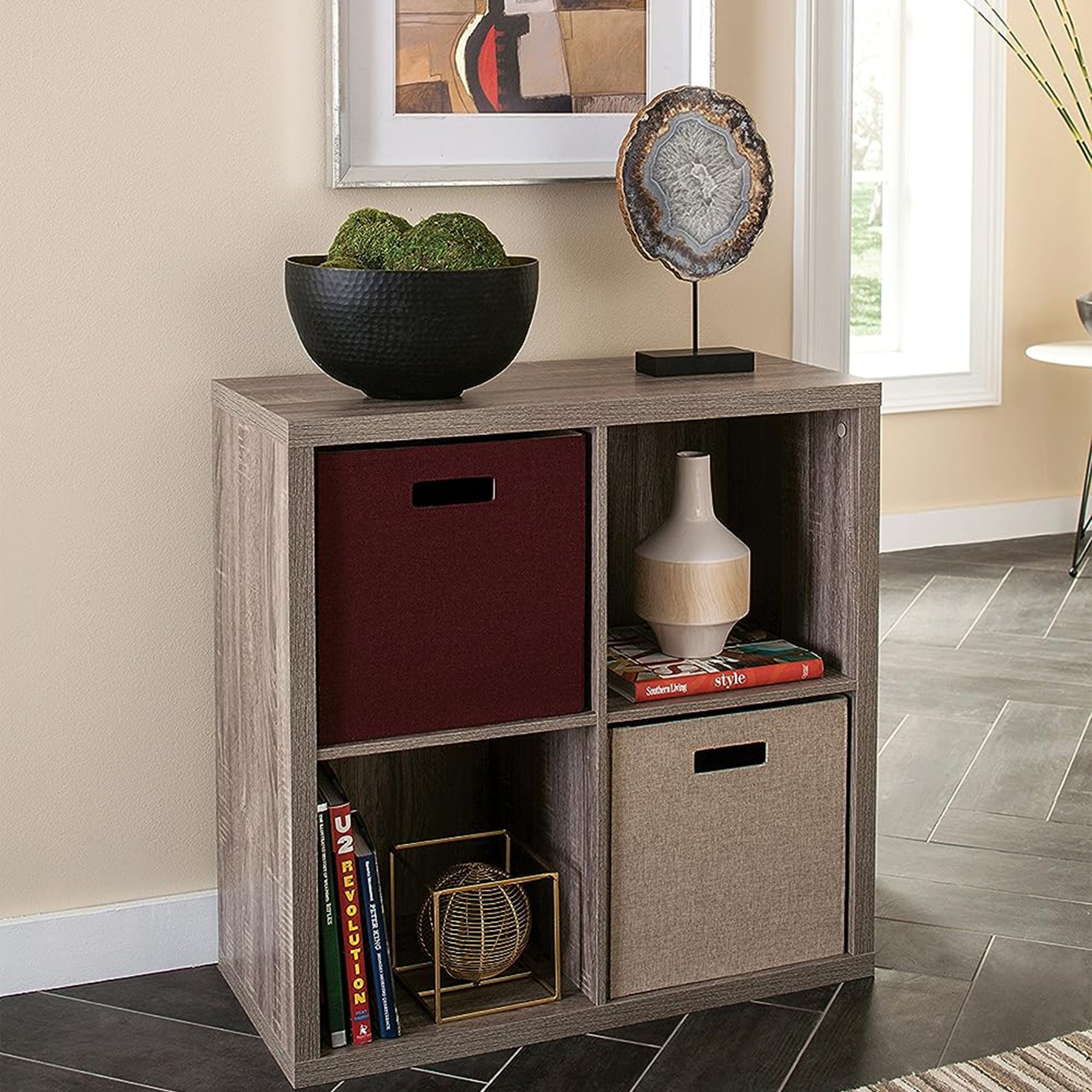 • Redefine your home organization needs with this 4-cube storage shelf
