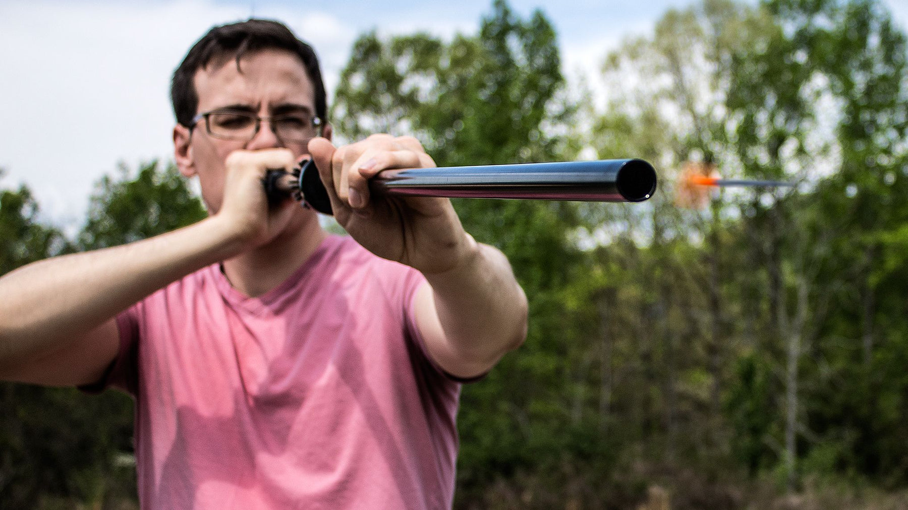 This aluminum blowgun is a great way to practice shooting at targets in the backyard or hunting small fowl, rabbits, squirrels, or fish in the brush and forest. With practice, you'll soon be able to hit targets up to 20 yards away.