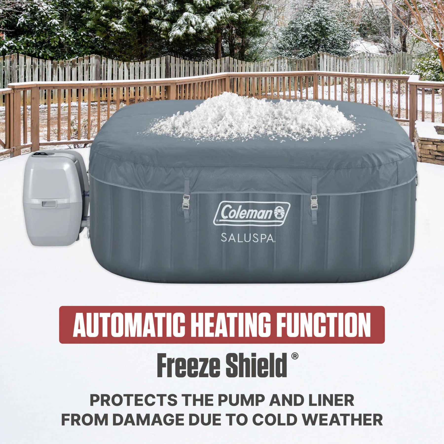 Sink into the warm, bubbling Coleman SaluSpa Hawaii AirJet 6 hot tub, created by the world’s first portable hot tub manufacturer. A relaxing soak in heated water is great for releasing muscle tension and supporting exercise recovery. Featuring the patent-pending EnergySense® multi-layered insulation, this hot tub is up to 40% more energy-efficient than similar inflatable hot tubs. The Bestway Connect™ app allows you to set your spa to the perfect temperature, activate the Power Saving Timer, run the water filter and control the massage system - all from the palm of your hand. The AirJet system features 140 jets that release bubbles from the bottom of the tub to create a relaxing environment. MaxHold™ fabric internal beams provide superior air pressure retention, stability and lightweight portability. The external wall is constructed with 3-layer Tritech material, proven to be both puncture and damage resistant. Designed with innovative Freeze Shield technology, internal temperatures stay just above freezing when not in use to prevent damage during colder seasons. This hot tub set features a multi-function pump that runs the inflation, heating and filtration systems, ChemConnect® dispenser that maintains the appropriate chemical level, and a reinforced cover to keep heat in and debris out. Electrical Safety Information: Our spas feature a Ground Detection System that ensures the spa is used with an outlet having a proper ground connection, providing additional electric current protection. Only use a grounded socket corresponding to the electrical rating of the attachment plug (110-120V AC, 60Hz, Single Phase 12A at 68ºF). NEVER use an extension cord or multi-plug adaptor. Be sure to regularly inspect both the plug and socket for signs of damage, and do not plug the product back into the socket if damage is found. Read the manual thoroughly before setting up your hot tub. Outdoor installation is preferred; Indoor installation has special requirements. APSP-14 and Title 20 compliant. This model meets all energy efficiency conditions required for sale in the following states: CA, MA, ME, NJ, NV, NY, OR, RI.