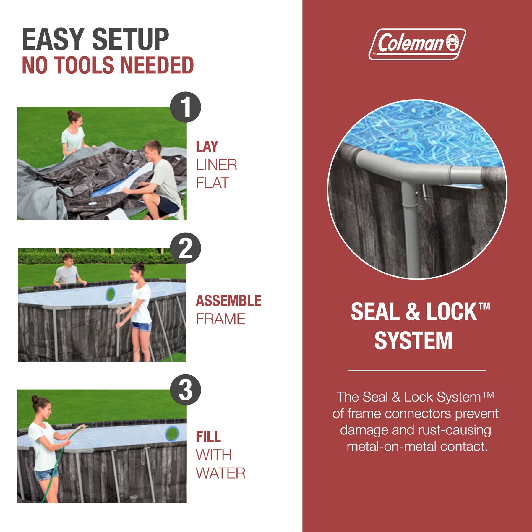 • Wood grain print on the outside liner provides a classy look and feel to your backyard; Easily assemble the pool with no tools required and take it down just as easily during the off-season
