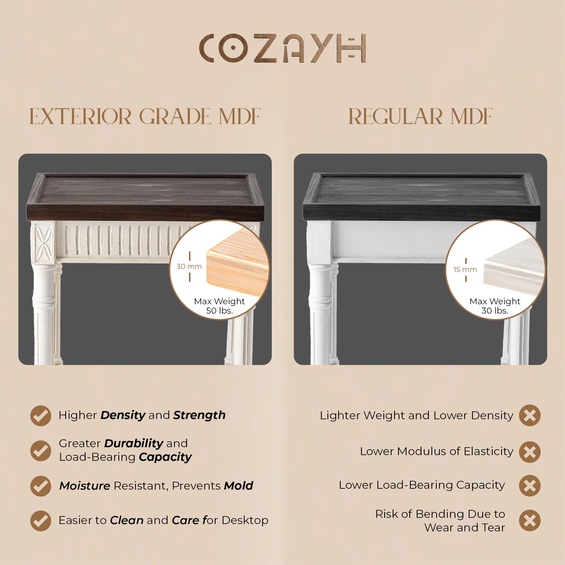 COZAYH French Country Accent End Table, Wood Tray Top Side Table, Brown & White