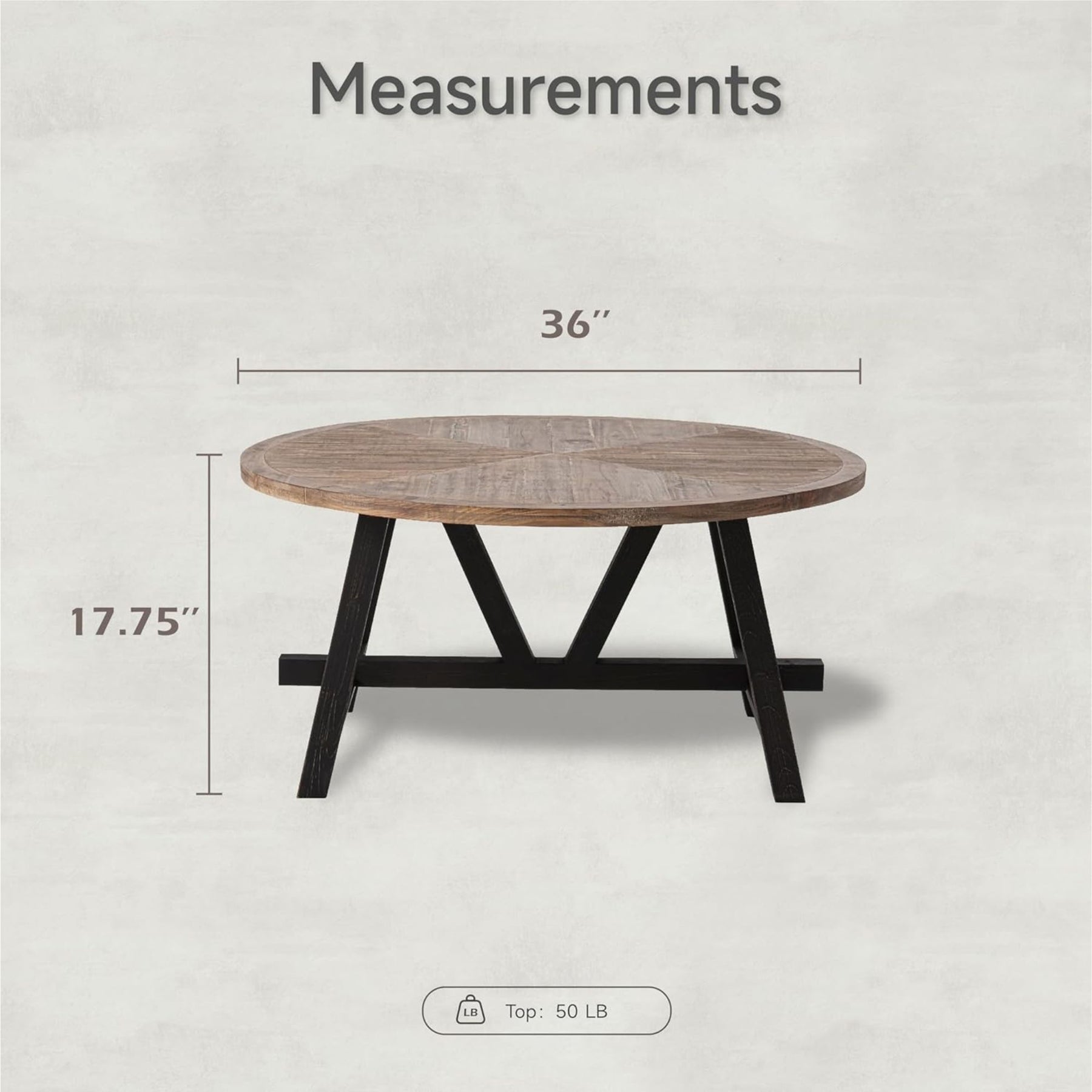 • Round Coffee Table features graceful curves and a distressed wood finish, adding timeless charm and old-world character to farmhouse, cottage, or antique-inspired interiors