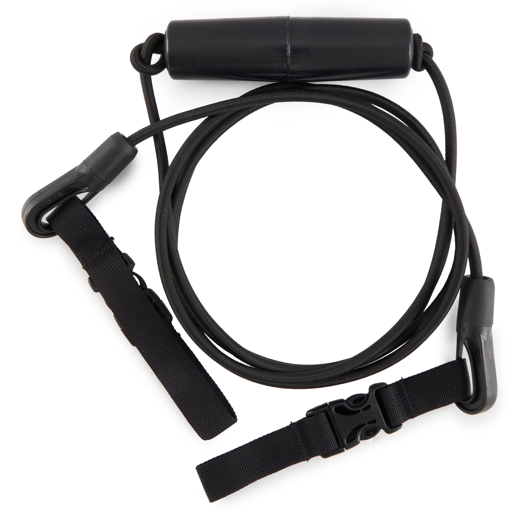 Also included is an 8-foot long tow-behind rope. This tow rope is 8 feet long at its longest and features an adjustable position line floater This sturdy tow rope is made of shock cord that stretches rather than snaps when you start or stop paddling. The tow rope has 2 clips and 2 strap buckles that easily and securely hold onto your cooler's handles.