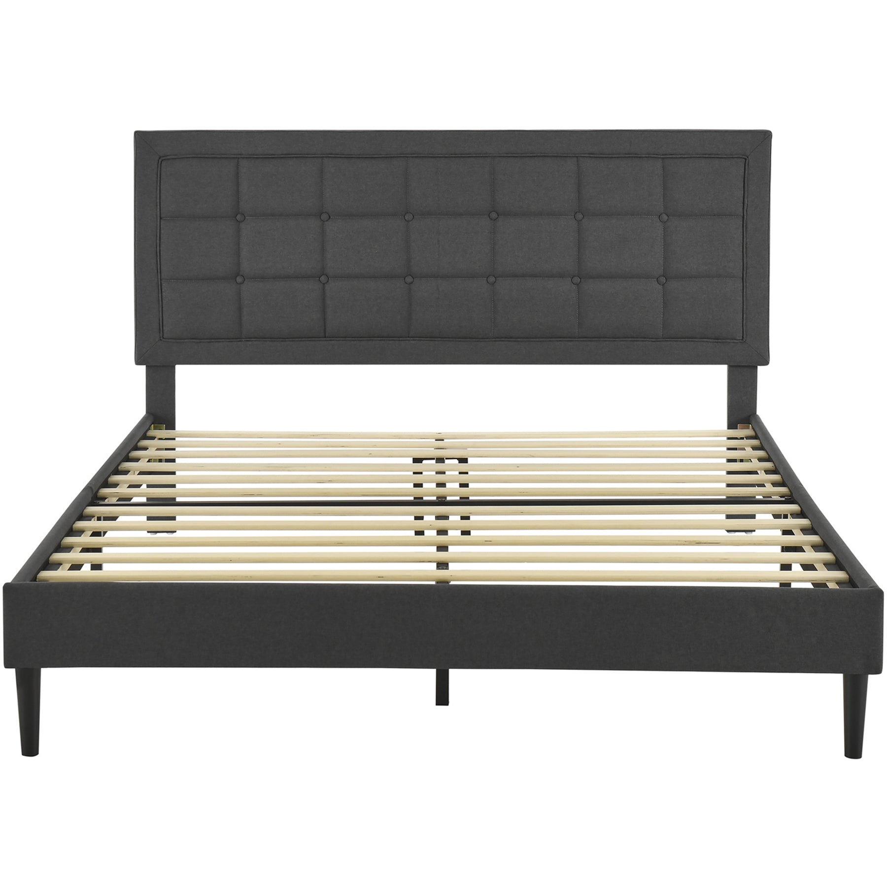 - Headboard bed frame features a rectangular, button-tufted design that adds a touch of elegance to your bedroom