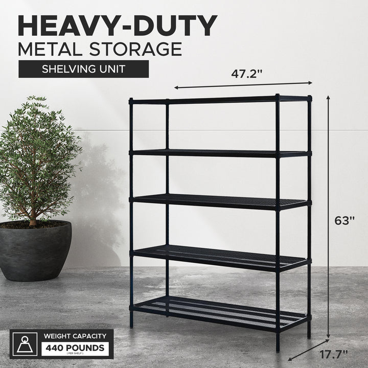 Design Ideas MeshWorks 5 Tier Full-Size Metal Storage Shelving Unit Rack, Black
