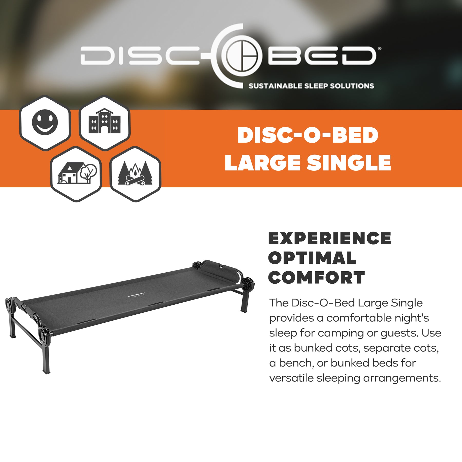 Disc-O-Bed Single Cot, Portable Sleep Solution for Tents & Cabins, Black, Large