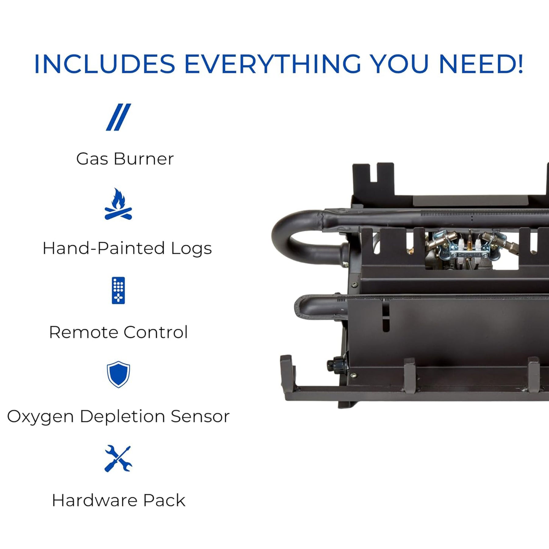Duluth Forge 18 Inch Ventless Dual Fuel Gas Log Set with Remote, Split Red Oak