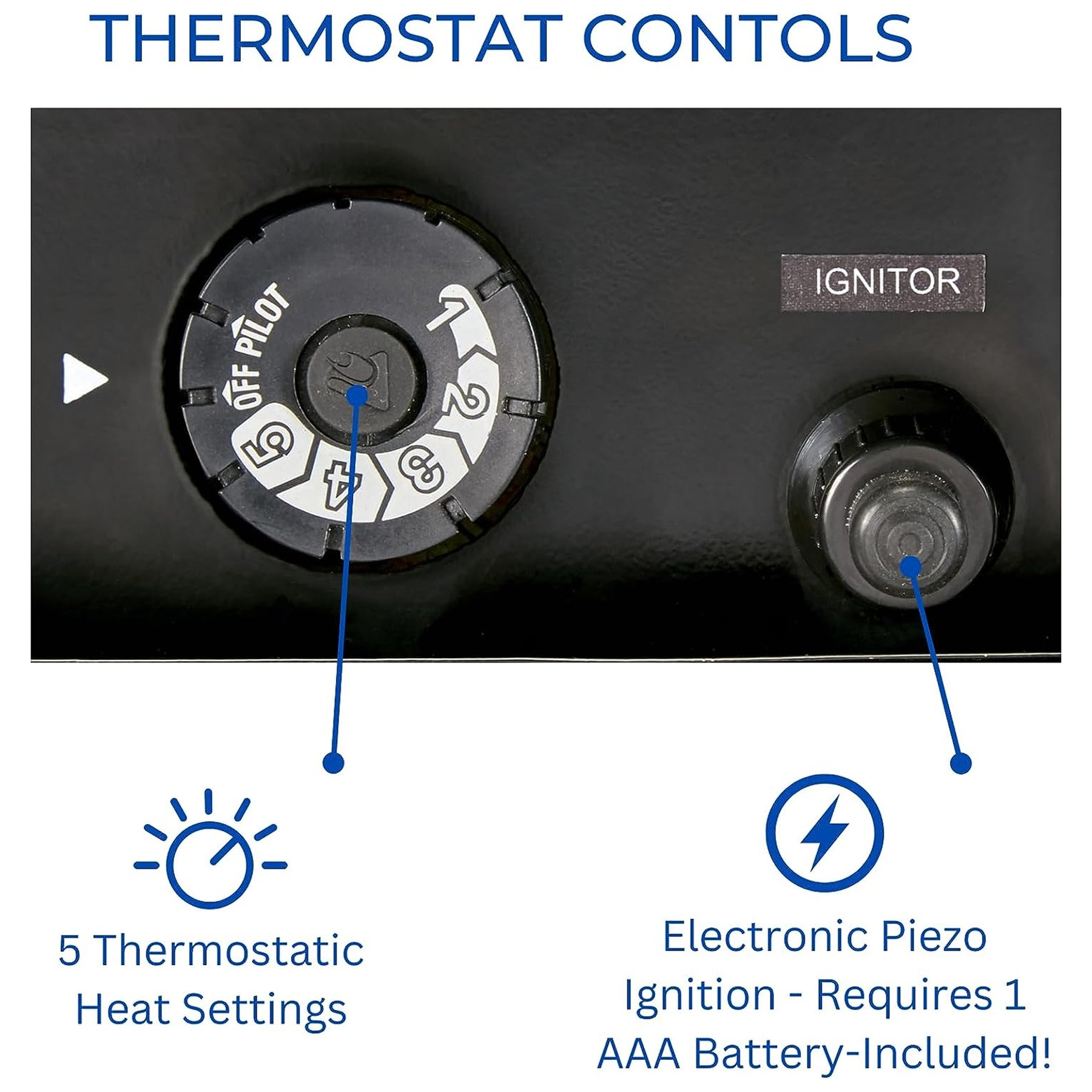 - Operates off of Natural gas only with user-friendly Piezo ignition for easy startup; Includes 1 AAA for electric ignition