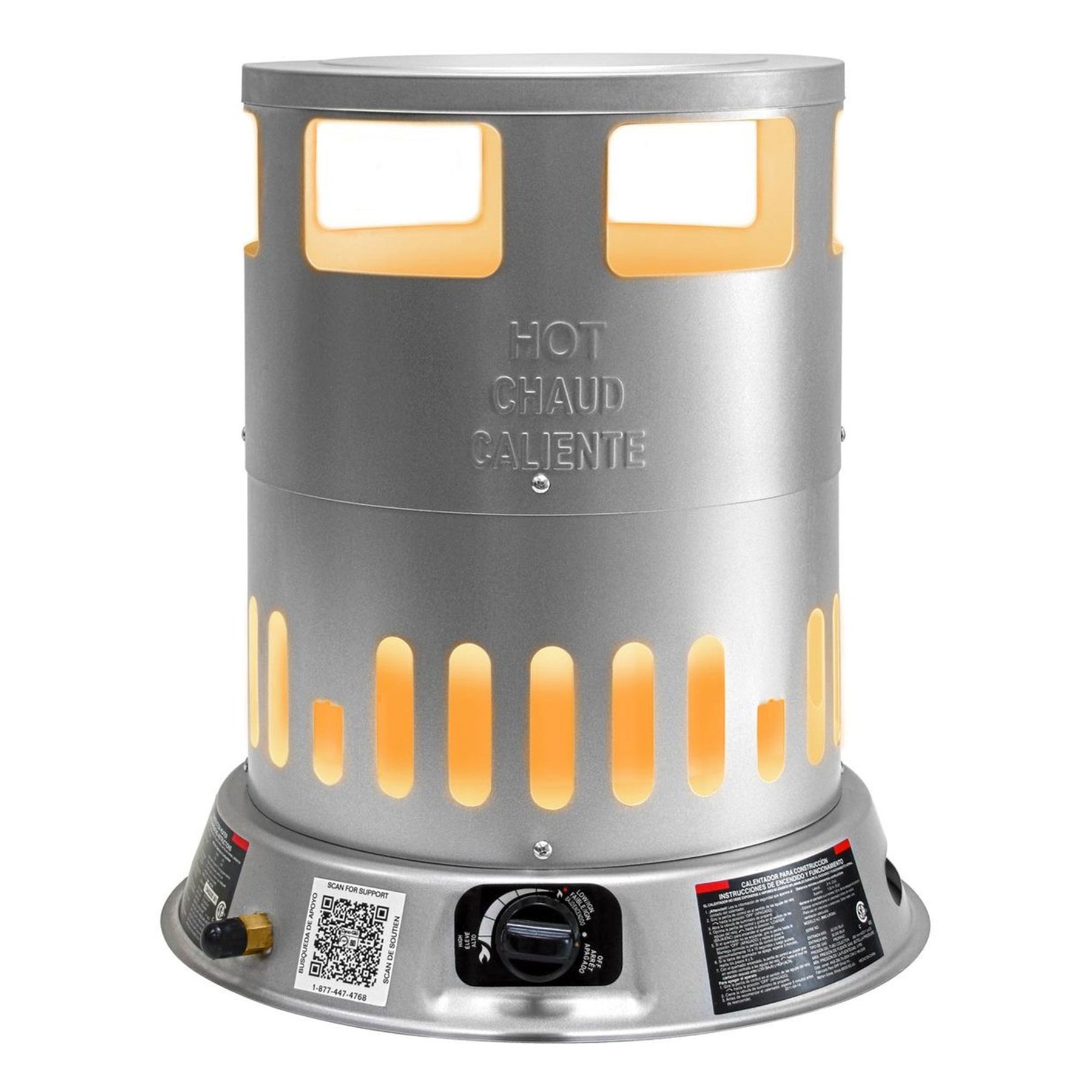 - Convection-style heater with 80,000 BTU maximum output heats up to 2,000 square feet with 360-degree heat projection