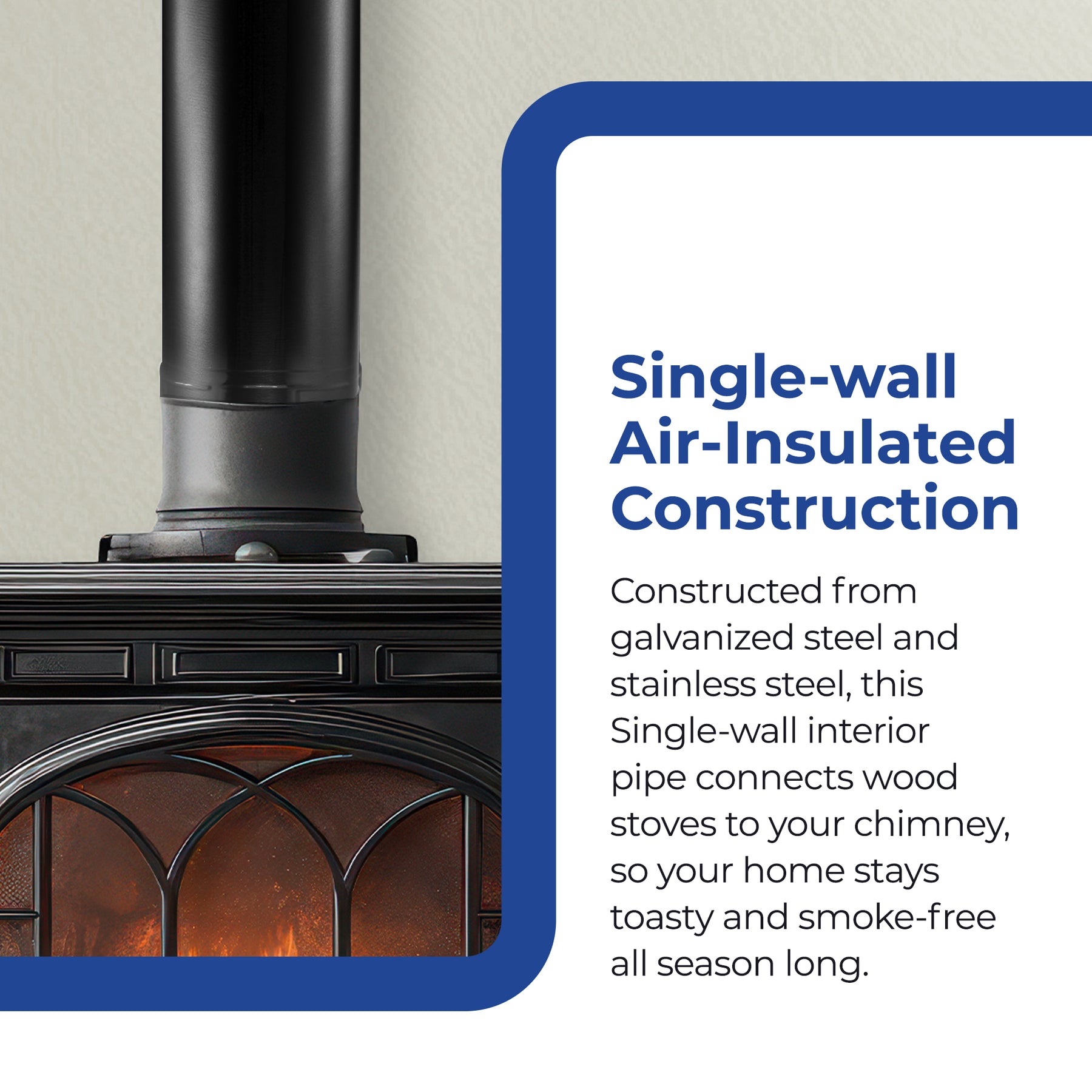 This adapter is required for proper connection, designed to connect the 6-inch DVL single-wall stove pipe and appliance flue out. Make a clean translation by connecting your wood stove to a manufactured chimney, so your home stays toasty all season long. The inner wall is made of 24 gauge steel to ensure that the flue heats up faster, stays hot for a longer period, and minimizes the creation of creosote waste. This ensures that the longevity of the adapter will be long and be the same as the chimney. With the length being adjustable, you don't have to cut or crimp the product to suit your needs.