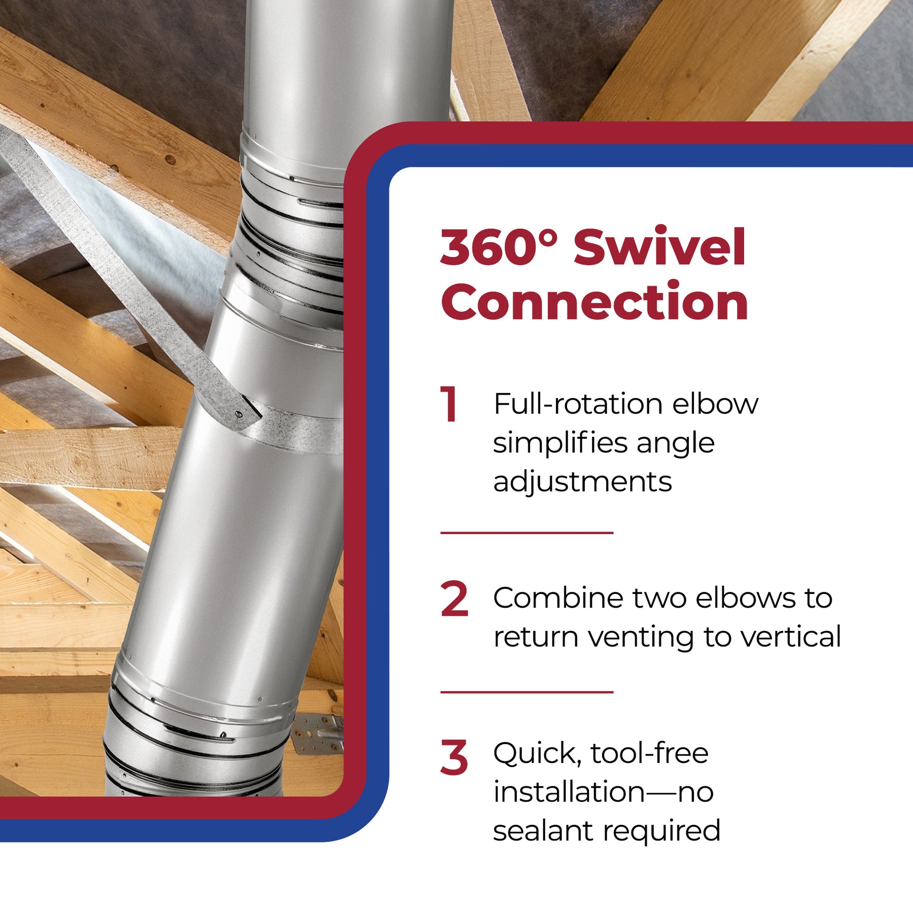 • Can combine 2 pairs of elbows if needed to conform to your need and return your vent to vertical