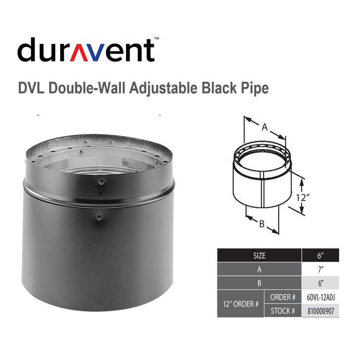 DuraVent DVL 6DVL-12ADJ Adjustable Steel Double Wall Stove Pipe, Black
