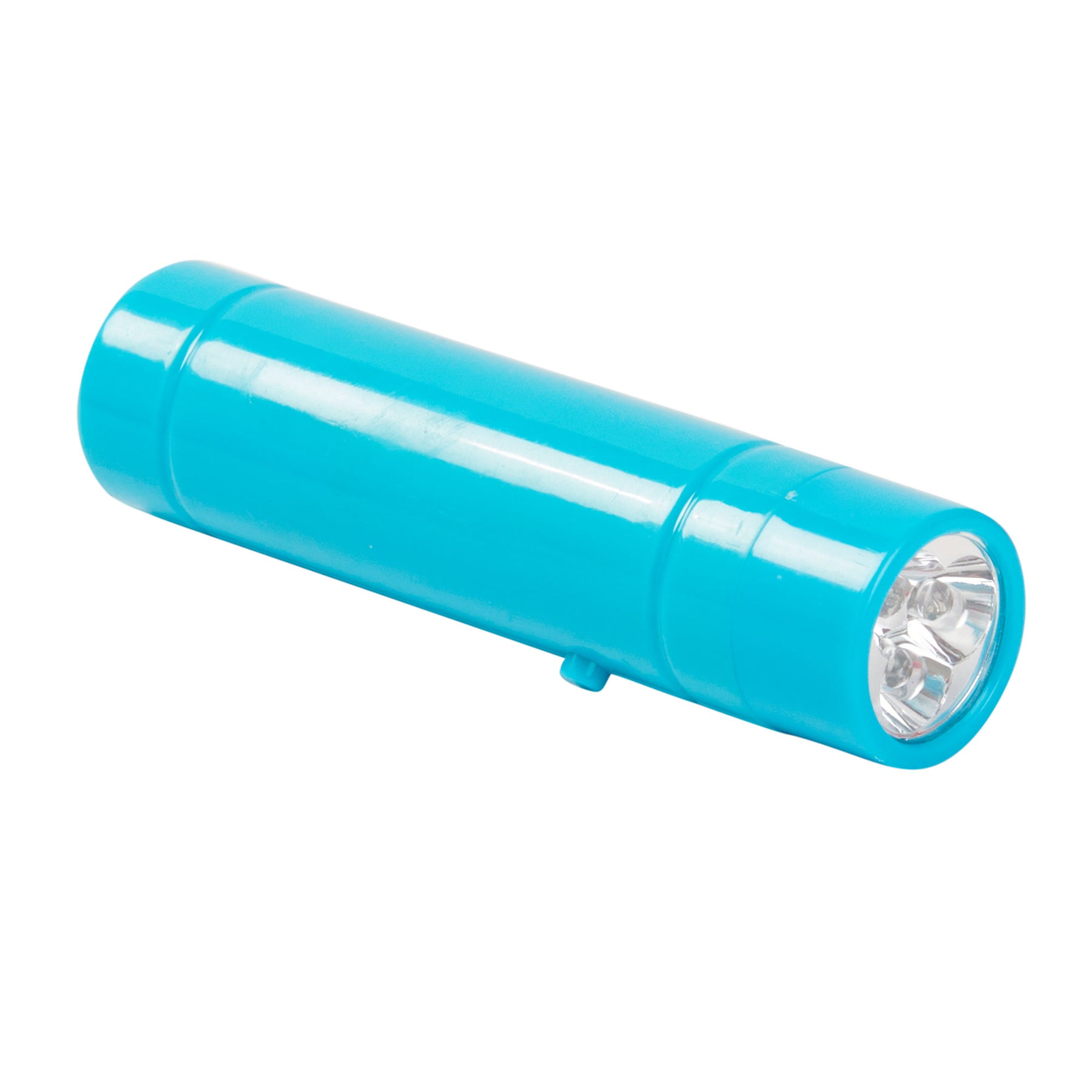 • LED flashlight lights the way at night for your kids (batteries not included)