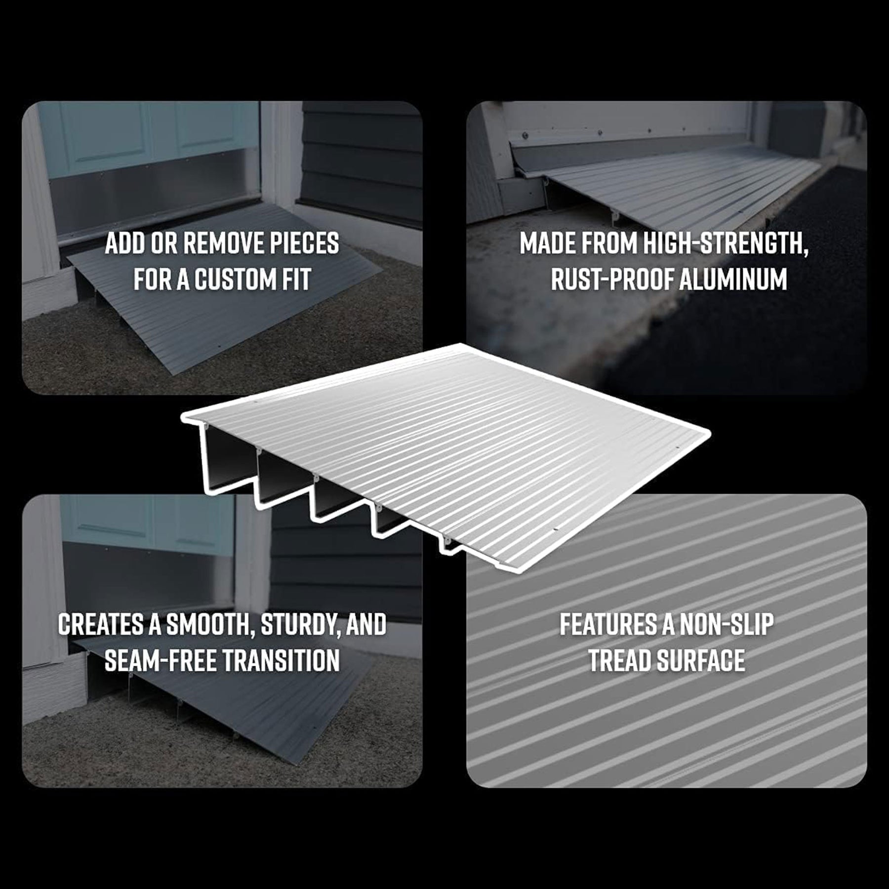- Designed for doorways, sliding glass doors, and raised landings, this ramp ensures a smooth and sturdy path for wheelchair, scooter, walker, or cane users
