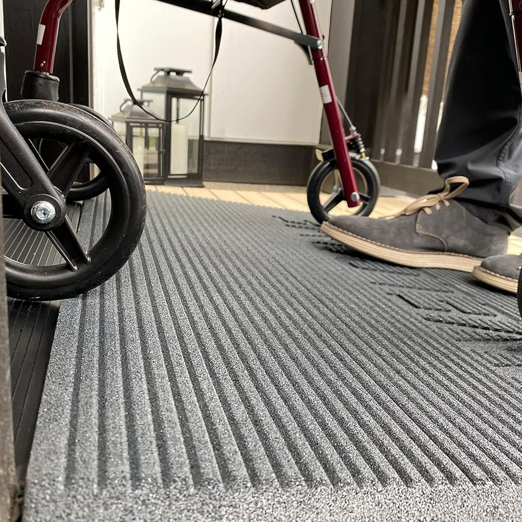 • Elevate accessibility with this rubber-angled entry mat with a 1.5-inch height that seamlessly integrates into doorways, providing a secure and stylish transition