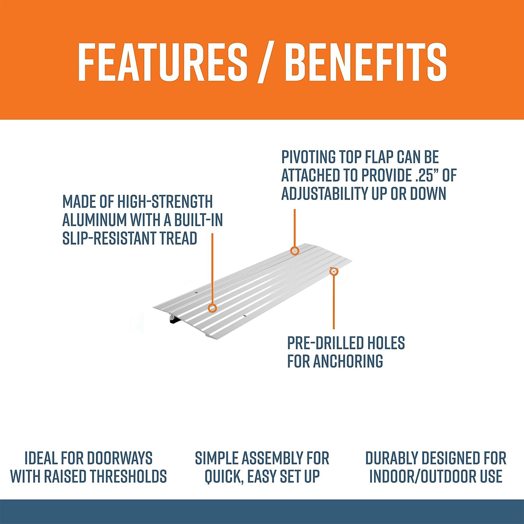 • Designed for doorways, sliding glass doors, and raised landings, this ramp ensures a smooth and sturdy path for wheelchair, scooter, walker, or cane users