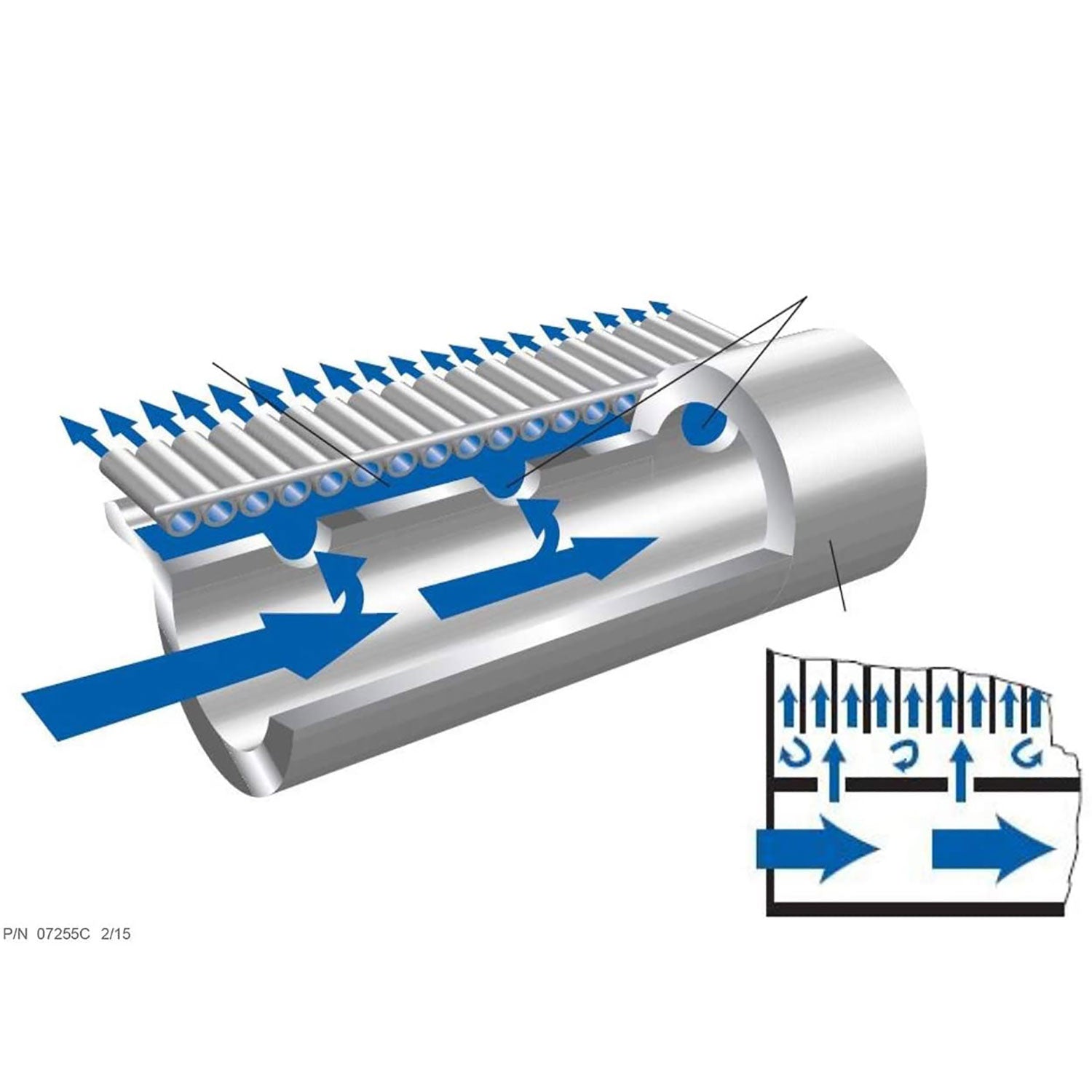 - Flow chamber and flow metering holes between header pipes and collector tubes maximize circulation and heating efficiency