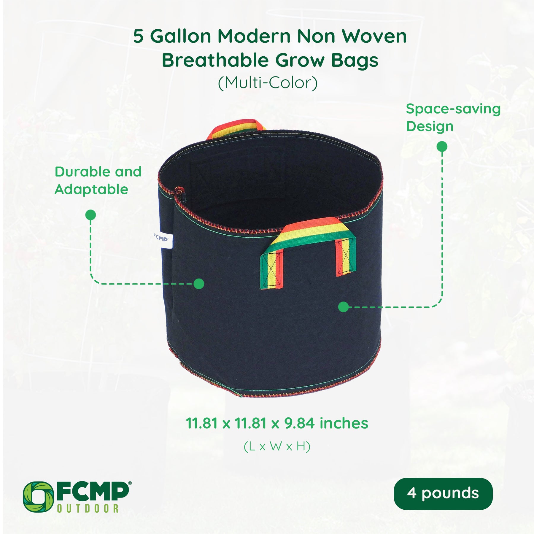 FCMP Outdoor 5 Gal Modern Non Woven Breathable Grow Bags, Multicolor (Open Box)