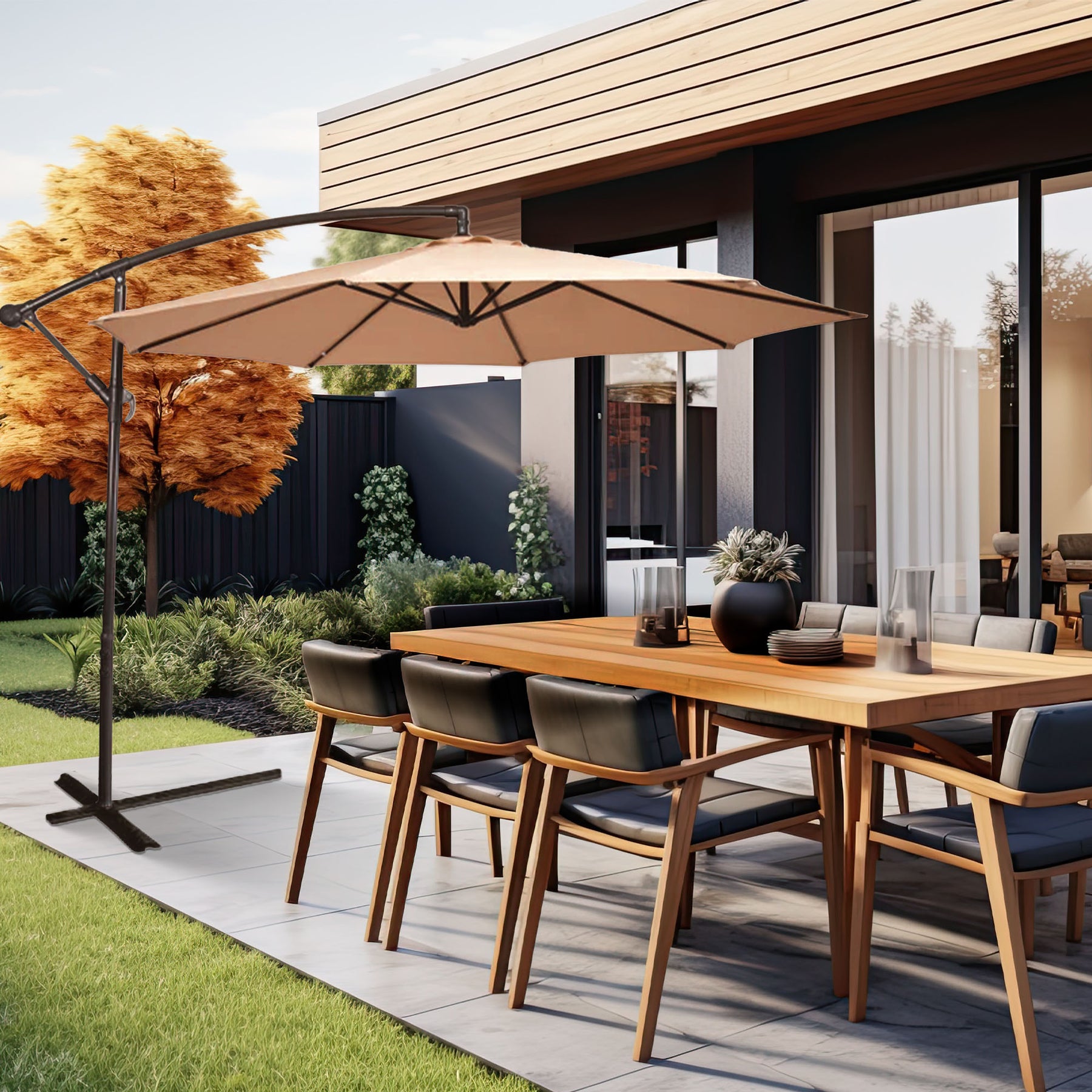• Offset umbrella that creates the ideal shade solution for your outdoor retreat
