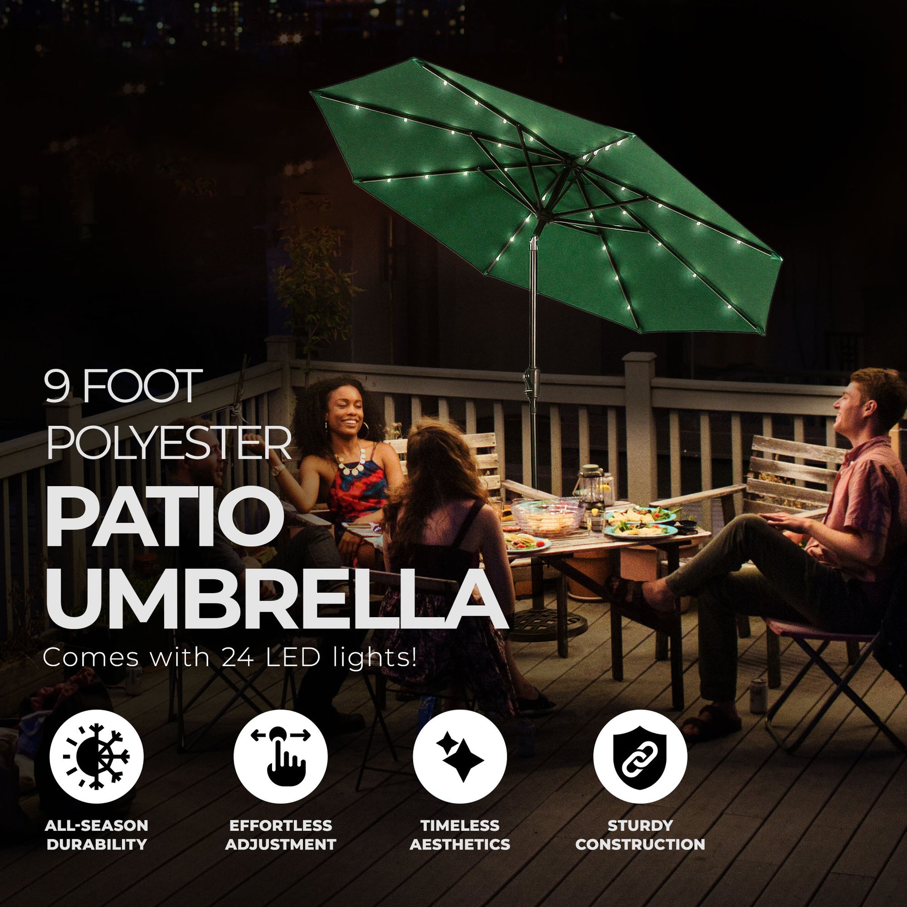 Four Seasons Courtyard 9’ Polyester LED Steel Pole Patio Market Umbrella, Green