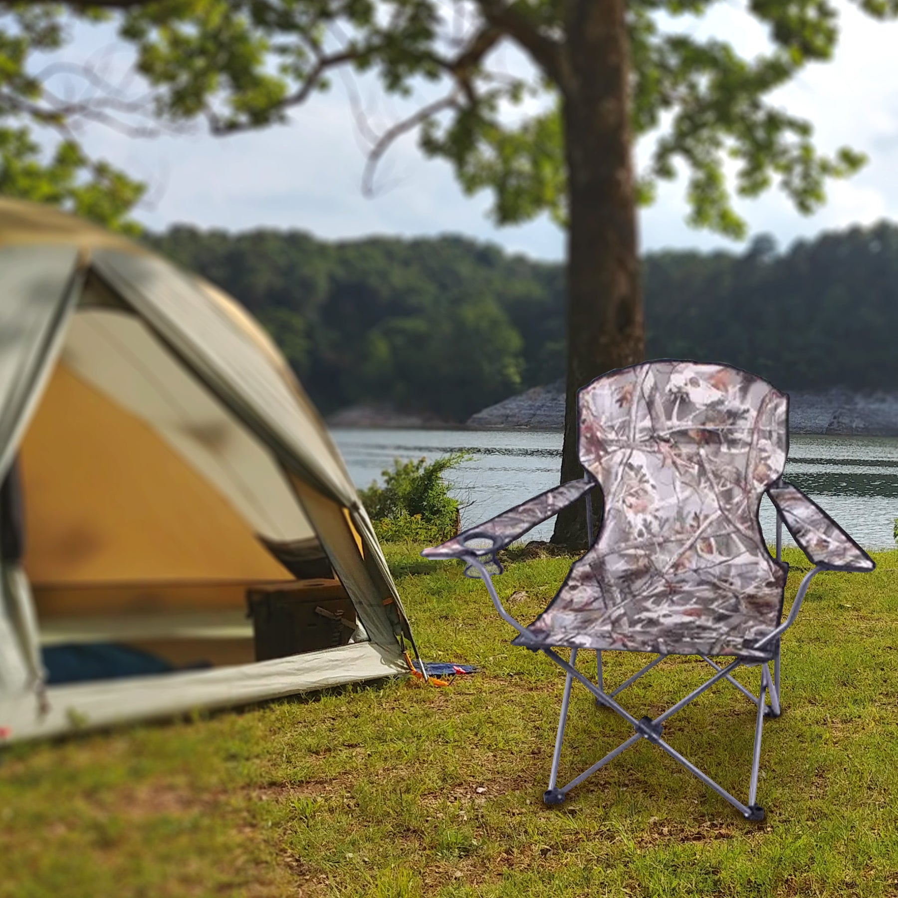 Four Seasons Courtyard Polyester Arm Chair w/Durable Steel Frame, Camo(Open Box)