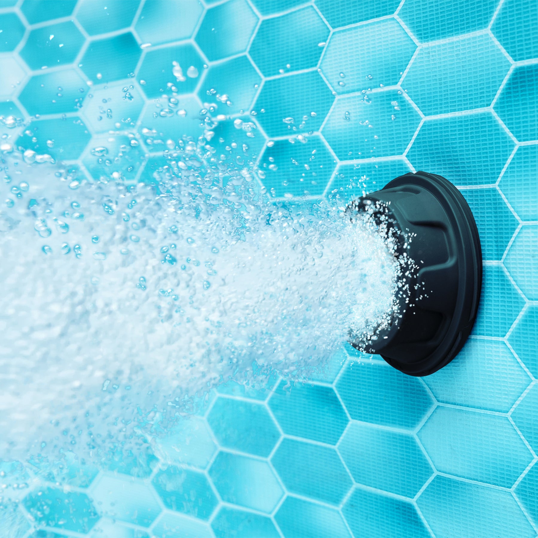 • This 12-feet designer pool by Funsicle features a sophisticated dark herringbone exterior print and honeycomb interior that elevates your backyard with a touch of modern style