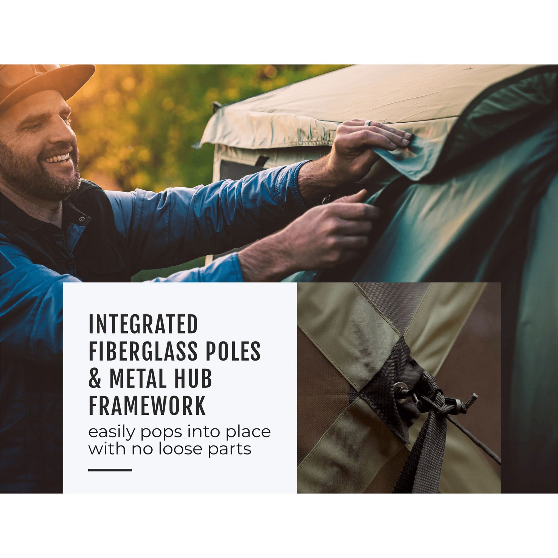 • Pop up gazebo tent sets up in as little as 60 seconds with hub design