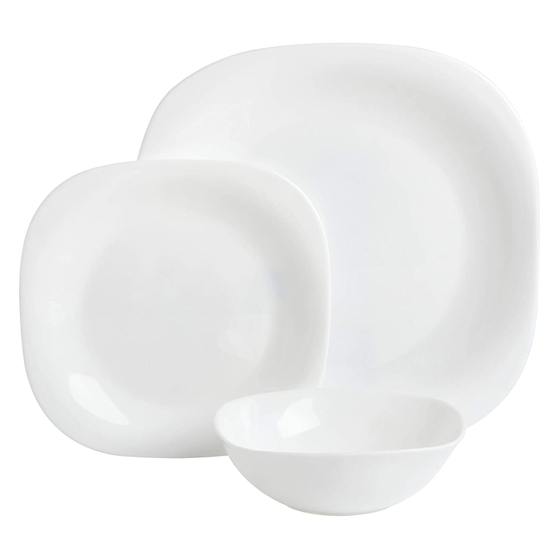 • Complete service set for 6 that includes dinner plates, dessert plates, and bowls that are dishwasher and microwave safe