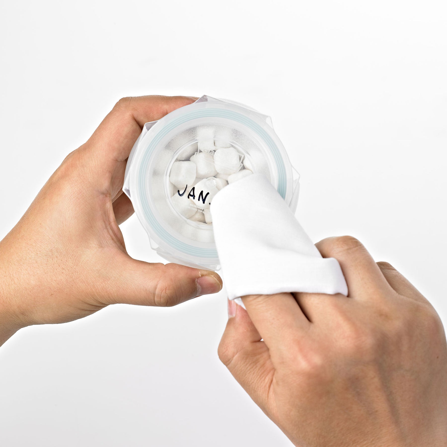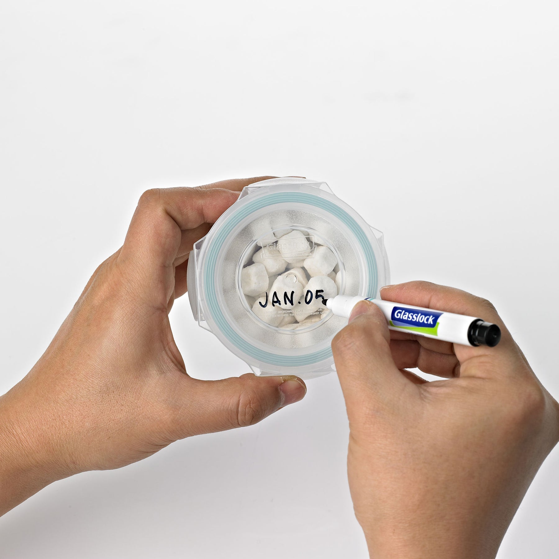 • Easily label lids using a dry-erase marker