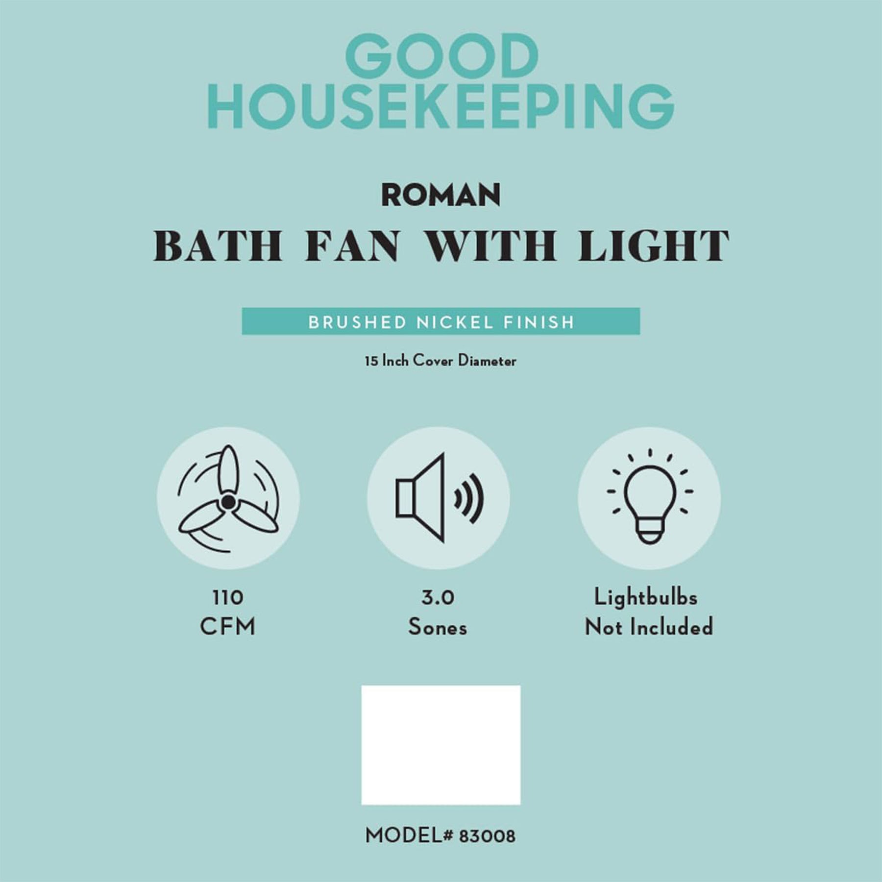 Good Housekeeping Roman Bathroom Ventilation Fan with Light, Nickel (Open Box)