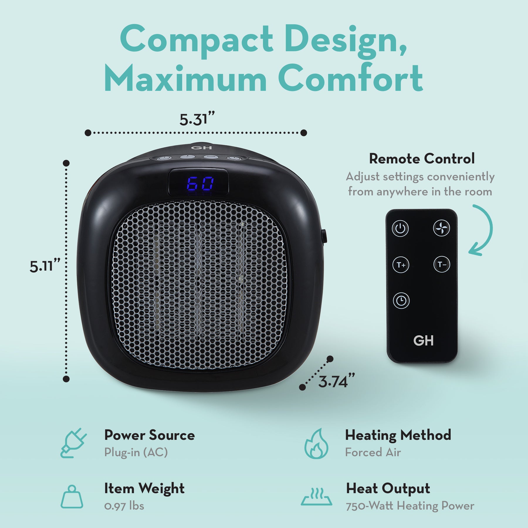 • Features a remote control for ease of use and a digital display that makes it easy to monitor and adjust your heating preferences